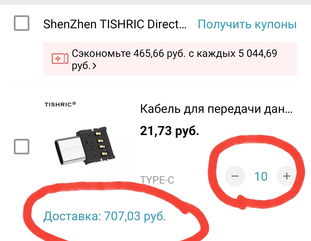 Вот доставка непропорционально увеличивается, и это в одном заказе. Так что у вас еще норм условия
