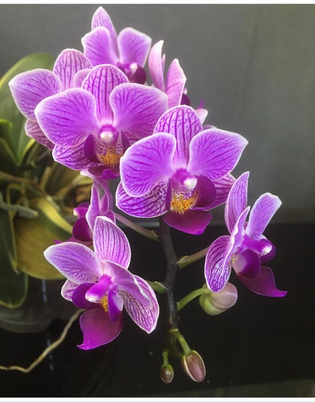 1. Phal. Sogo Vivien - 1000. Взрослое здоровое растение, несколько раз цвело, на фото цветение этого растения этим летом, сейчас продолжает наращивать цветонос и растит два новых, пересажено в этом году.