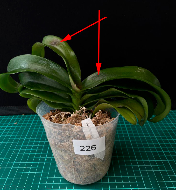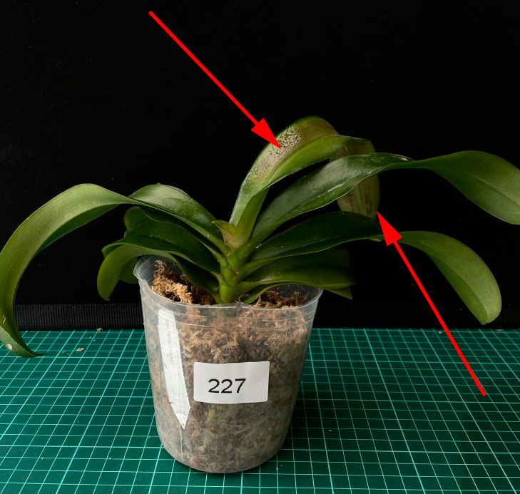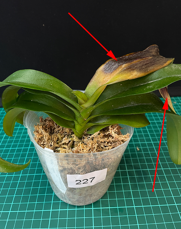 Давайте наглядно. У нас есть две полученные в первых числях ноября и бывшая на распродаже 11-11.2020 красавицы Добкин, под номером 226 и 227. В пути из за слишком теплой упаковки растения сконденсировали (выделили влагу что естественно т.к они ведь дышат!) и мокрые места, соприкасаясь с другими такими же влажными субстанциями в полном отсутствии вентиляции листья получили повреждения.