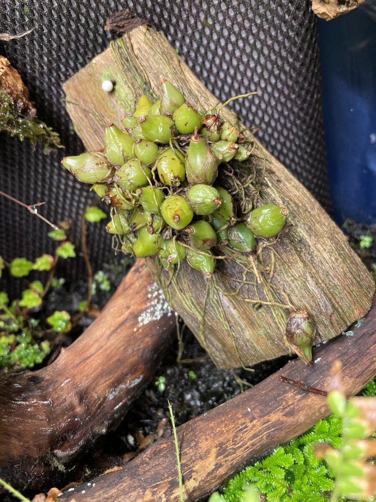 @julesja, а два мелких бульбаша, что Вы показывала ранее, можно перевалить все как есть (в одном родном мхе) в глиняный горшочек такого же диаметра (7 или 9 см). Если сверху найдется положить мельчайший мох (Алла знает какой)), вообще супер будет посадка для них для выращивания в аквариуме. Пересаживать не потребуется годами, только мох лишний пропалывать. А расти они будут поверх стенок горшка во все стороны. По типу как на глиняной колбе с водой. Вообще для таких бульбашей эта посадка самая лучшая, но растут они в ней только при условии выращивания в оранжерее или в аквариуме, как раз как в данном случае.