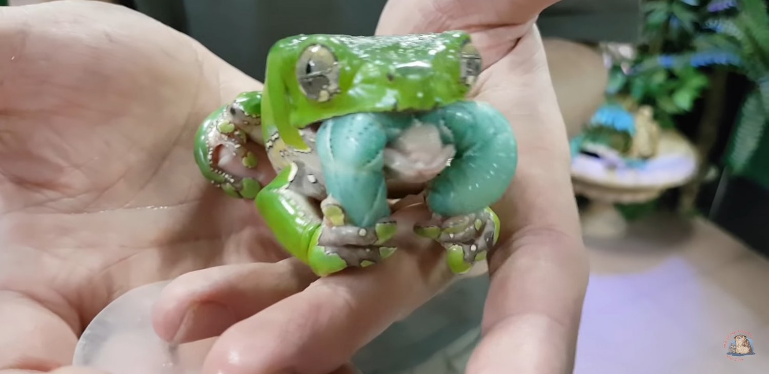Вот Вам Царевна-лягушечка. Вкушает гусеницу бражника, а сама в состоянии анабиоза. Живет в Московском зоопарке.Еще там есть лягушки Водоносы- огромные -как тарелка. Зоолог Гатилов про них все рассказывает на экскурсии.
