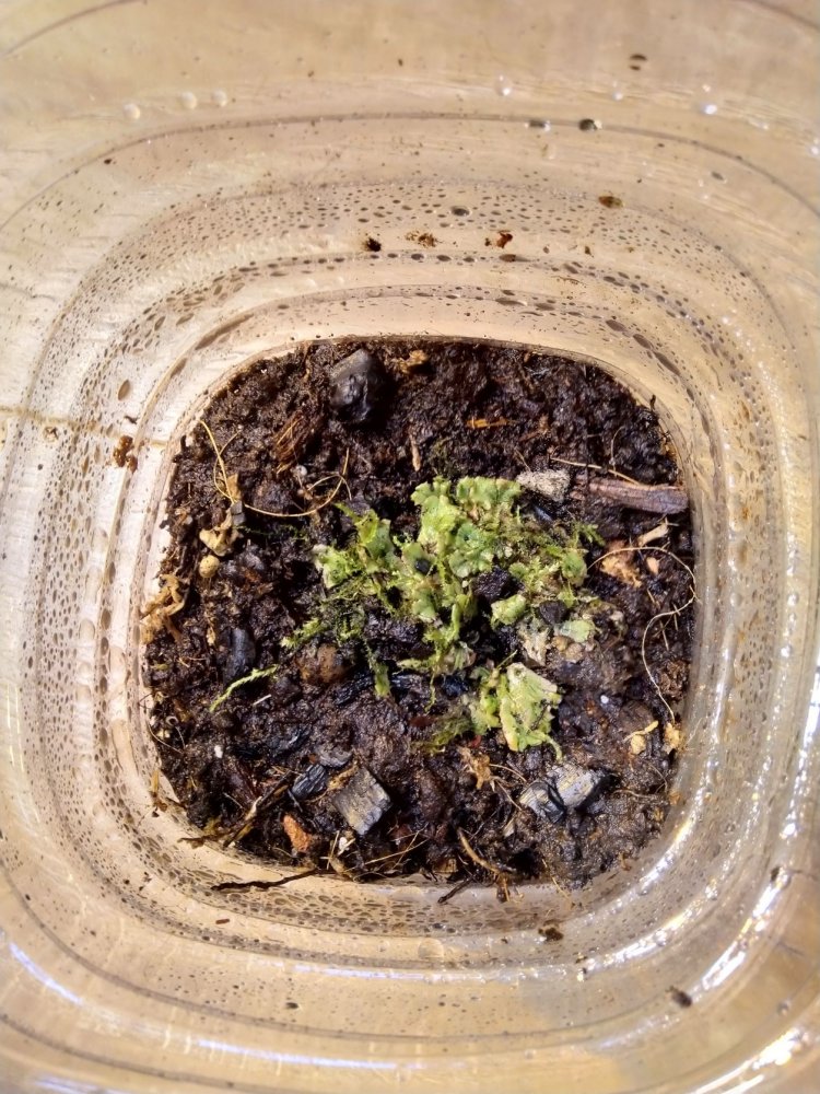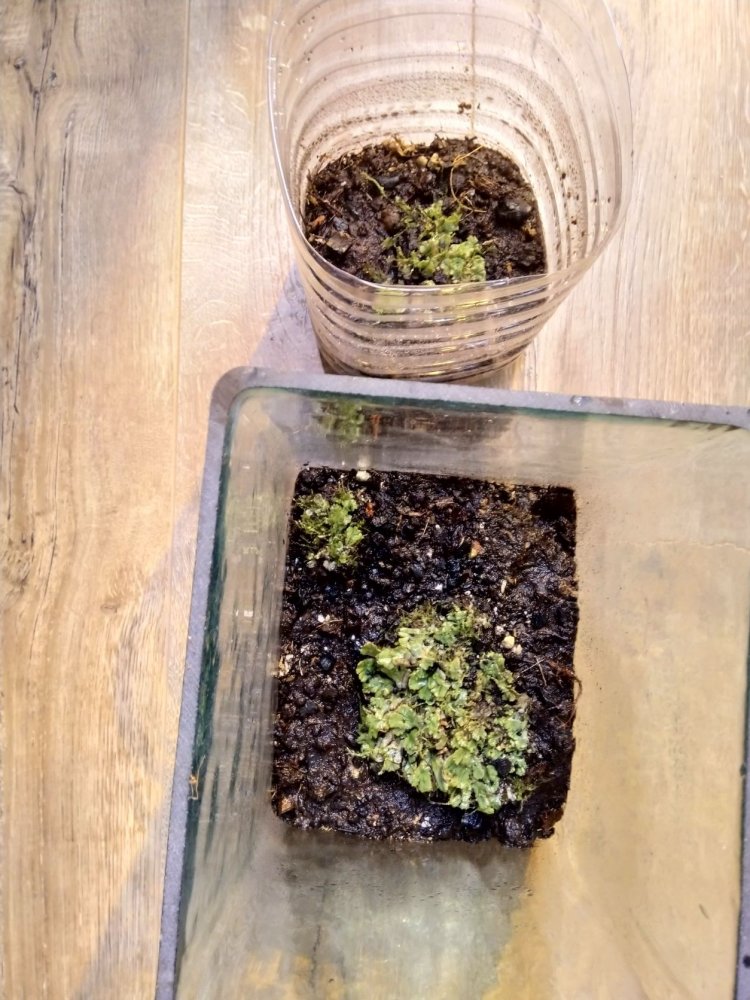 И устроила полученное в двух временных баночках, до весны. Маршанцию просто сверху субстрата положила, думаю она сама прирастет :) а семена недотроги раскидала просто, правда не все, а то вдруг пересевать придется. Особой красоты пока нет, буду ждать :)