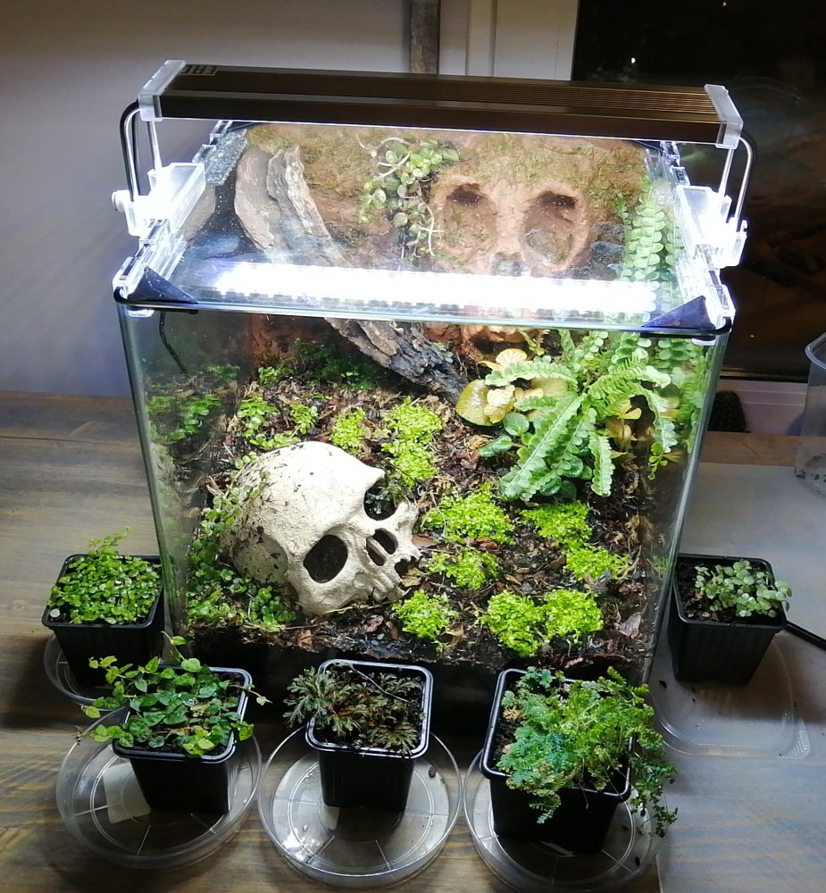 Хочу поделиться личным опытом использования аквариума для реанимации орхидей и выращивания некоторых их видов. Идея была давно, хотела создать постоянную среду обитания для некоторых видов мини орхидей. Купила аквариум на 15 л с полностью закрытой крышкой и вмонтированной в нее досветкой в виде светодиодной лампы (условие отсутствия сильного нагрева от досветки было тоже важным критерием). Параметры выбора именно такой конструкции нужны были для выращивания практически в полностью закрытой системе микро и мини орхидей. Отверстие для корма рыб служило бы для вентиляции, при этом влажность внутри была бы постоянно в районе 80-90%. Заказала для этого орхидеи в Эквадоре, вырастила в отдельных емкостях несколько видов лесного мха для использования при посадке и обустройстве аквариума. Вобщем, все было готово и продумано, но именно эти орхидеи, в большинстве своем, не приехали, а приехавшие были в не пригодном состоянии для осуществления задуманного. Погоревала и забыла. Однако уже имеющийся в наличии аквариум решила как то приспособить под орхидеи. В итоге получилась отличная реанимационная камера для орхидей. Особенным плюсом стала мобильность - из за встроенной лампы и полностью закрытой конструкции можно ставить в любое свободное место, которое в другом варианте никогда бы для выращивания орхидей не подошло. Поливать внутри растения требуется очень редко из за высокой влажности воздуха внутри. "Обустройство" - на дне пеностекло, слоем около 3 см. Заливаю его водой примерно на 1 см, дальше оно всю воду впитывает и держит около 2 недель, что и создает парниковый эффект. После просто доливаю воды на дно. Что можно там реанимировать и/или выращивать. Любые мини и микро орхидеи теплого содержания (бульбофиллумы, лепантесы, например). Эти же виды орхидей, но требующие выращивания только на блоках (в обычных комнатных условиях выращивать такие практически не реально). Также просто супер быстро там растет мох - ставлю готовые под посадку горшки с субстратом (без орхидей), сверху кладу немного мха для разрастания по поверхности и ставлю в аквариум. Примерно через 3 недели вся поверхность покрывается отличным лесным мхом, вынимаю горшок и сажаю туда орхидею. Дальше уже выращиваю просто в комнате (мох остается живой, но не растет с такой скоростью что, собственно, уже и не требуется, он нужен как компонент субстрата для орхидеи). Кто ранее читал мой опыт реанимации орхидей в живом сфагнуме в теме Адаптация орхидей при помощи парника - все тоже самое можно проделывать и здесь. Только сразу с несколькими орхидеями и с готовой подстветкой (не нужно продумывать, где расставить всех реанимашек так, чтобы никому не дуло, у всех была досветка и т.п.). Думаю, со временем обязательно найдется еще какой либо вариант использования аквариума под орхидеи, буду продолжать эксперименты в этом направлении)).