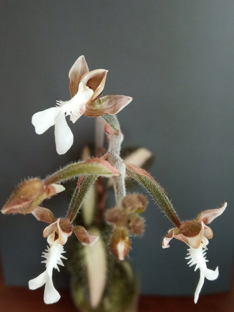 И из ценностей моей коллекции, цветение Anoectochilus Roxburghii тоже прекрасно, хоть и ценятся драгоценные орхидеи парчовыми листьями, расшитыми золотом-серебром: