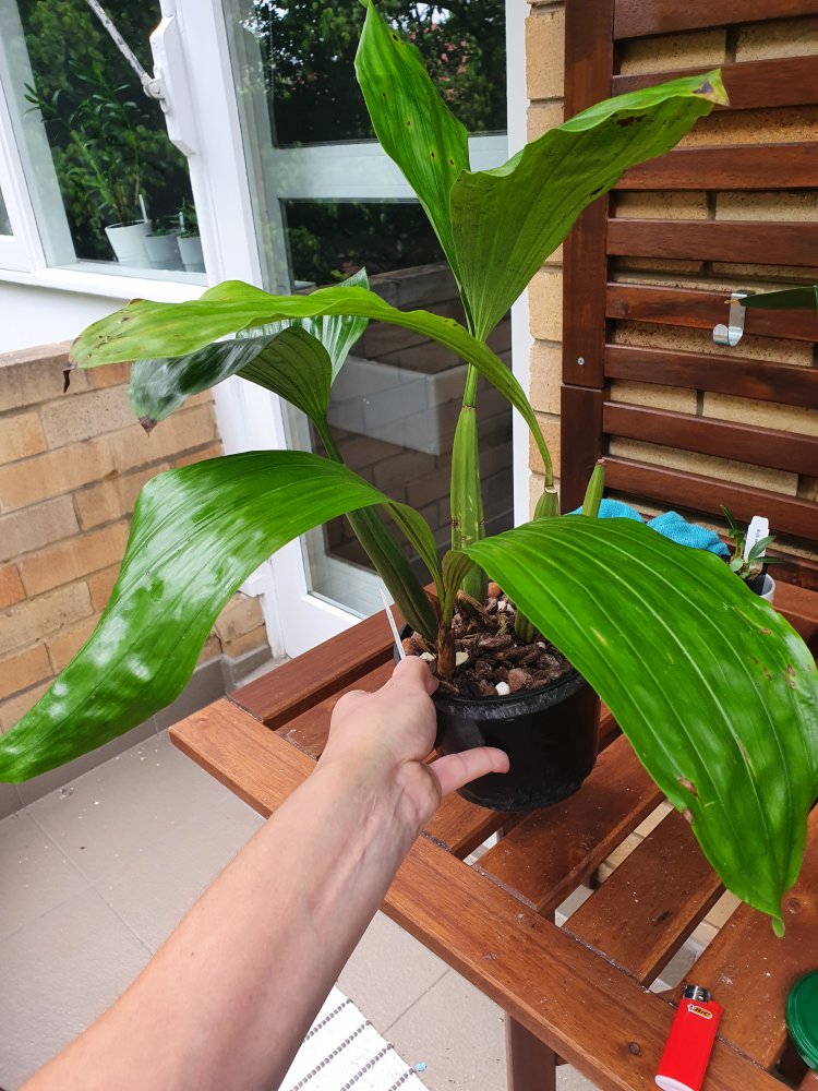 А вот для сравнения Coelogyne merrillii такого же размера большой куст но у нее быстро коричневеют концы листьев (слава богу пока ризома целая, сегодня раскапывал проверял чтобы убедиться) и морщит бульбы. Но появились новые росты, поэтому пока надежда ещё есть, но я все равно переживаю