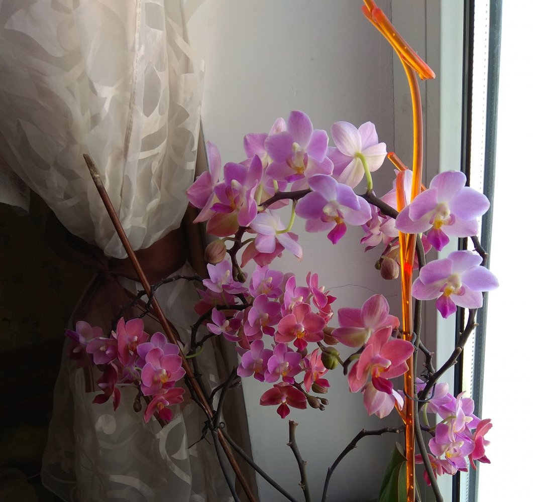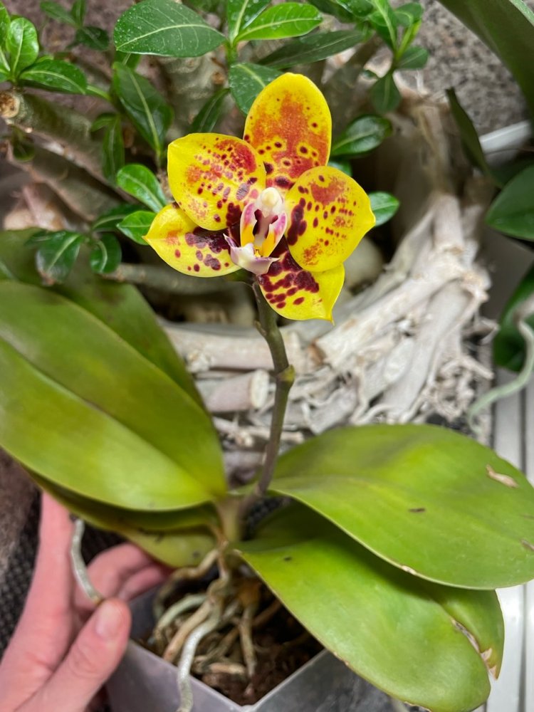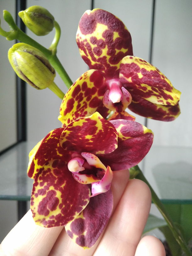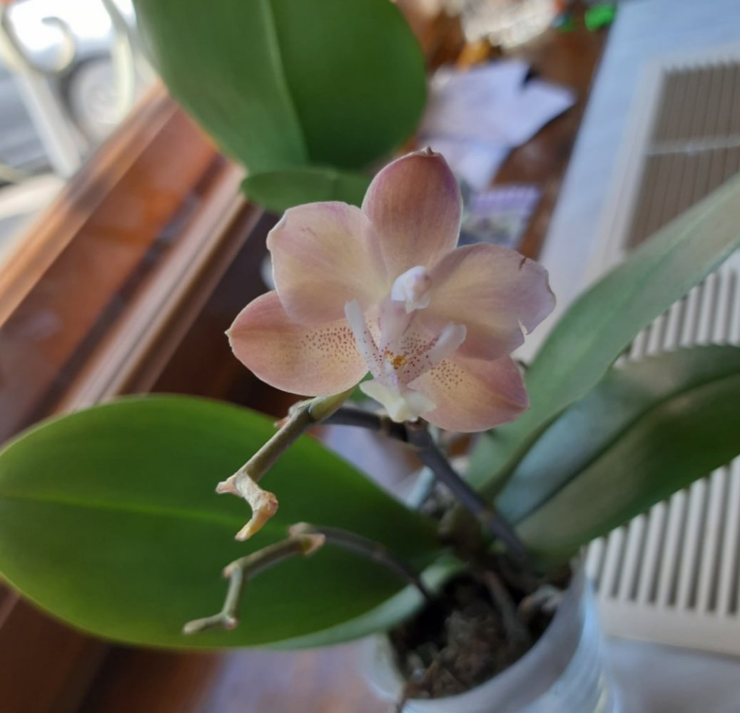 Распустилась мой новичок I-Hsin Maple Valley "Diamond Peach. Пришел с двумя цветоносами, но в дороге отсушил бутоны, оставил только один. Цветочек маленький и по форме пока не такой как на фото в предложении, но все-равно очень милый и симпатичный малыш) аромата пока не чувствую. Буду ждать домашнее цветение)