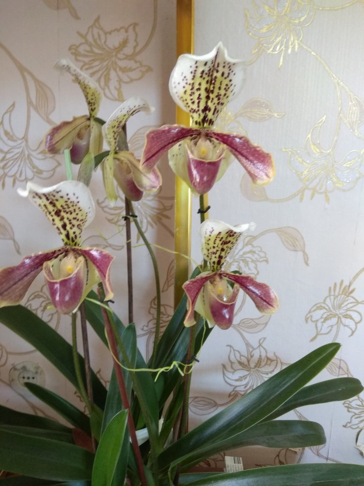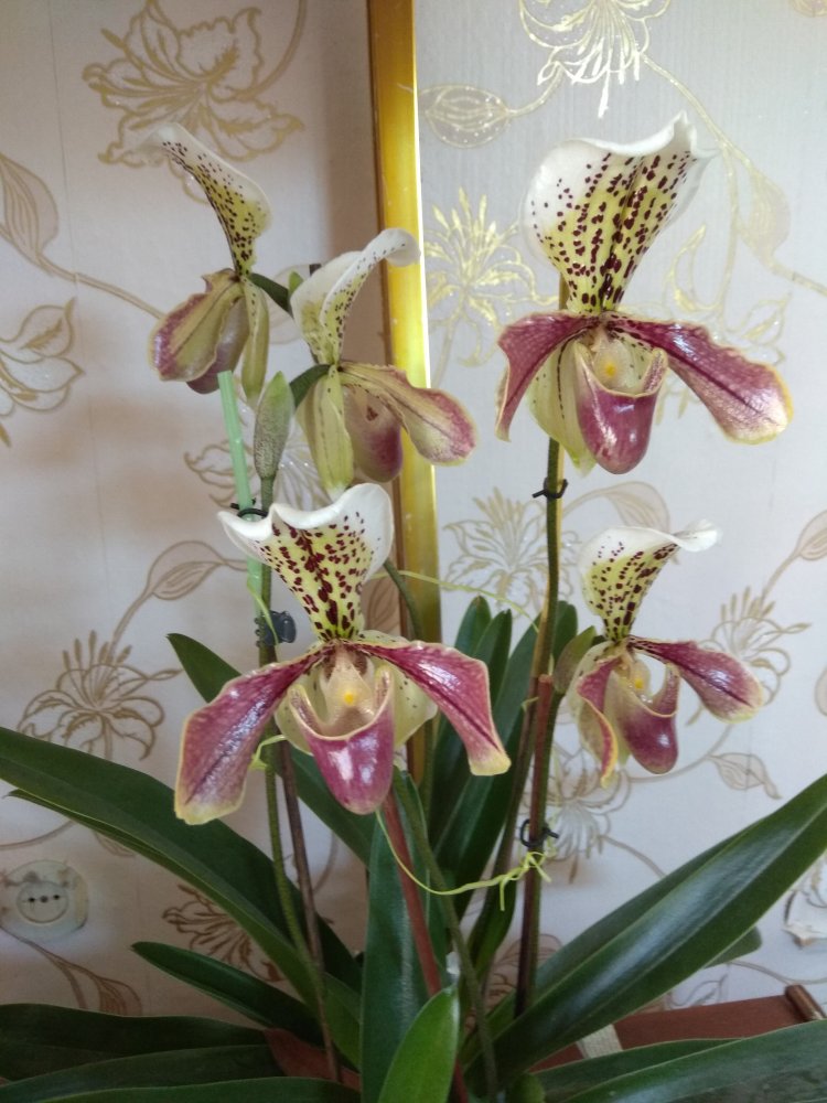 вот его точно надо на конкурс "Краски лета". Фон поинтереснее подобрать и вперёд к победеУ Пафиопедилюма цветут 5 ростов одновременно с 20 марта! Шикарная куртина!