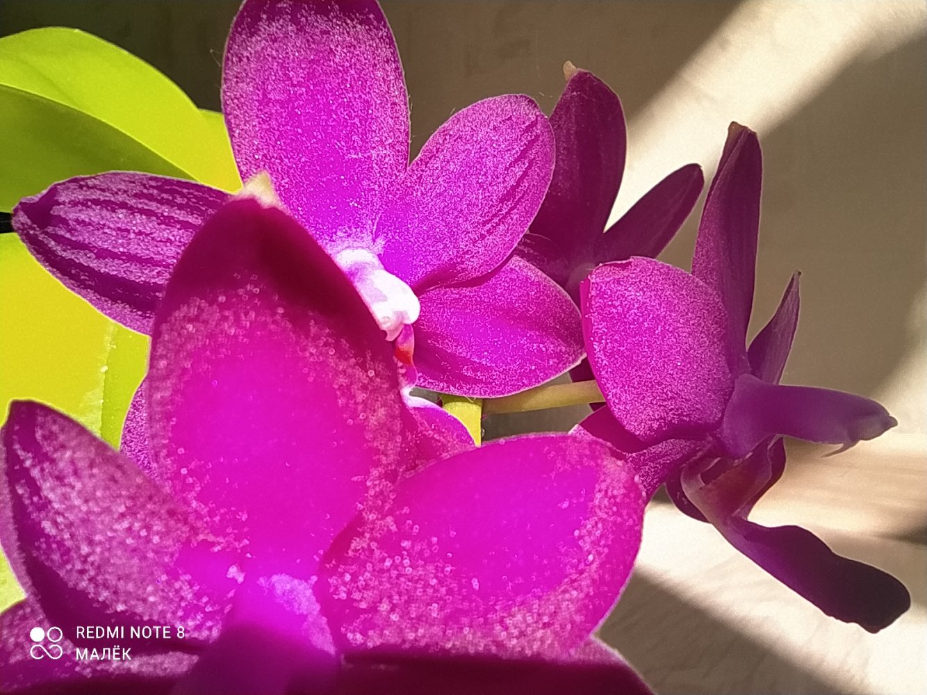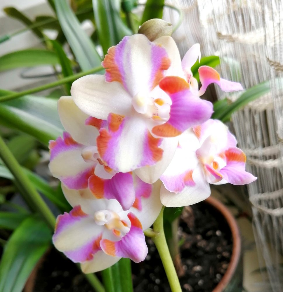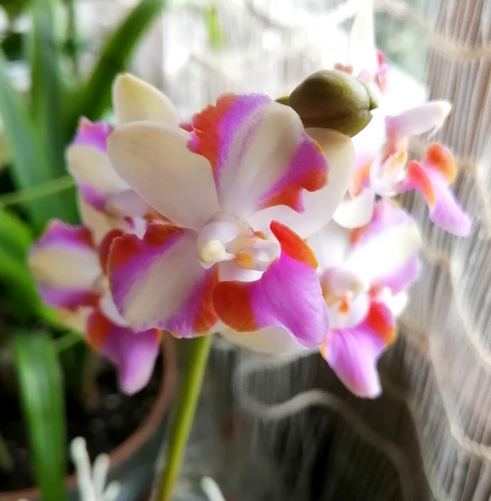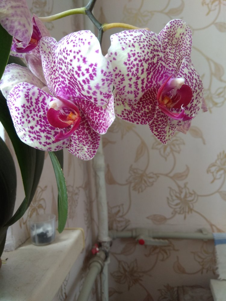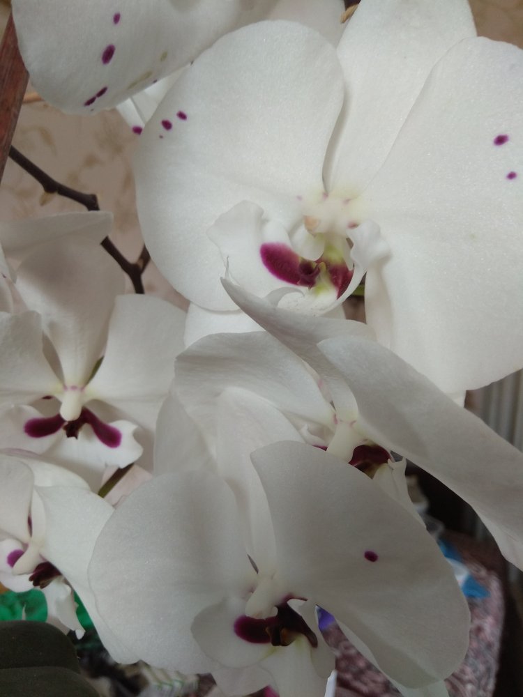 ОДИН из цветоносов Phal. Cleopatra с трёх сторон,- одним снимком не получилось!!!