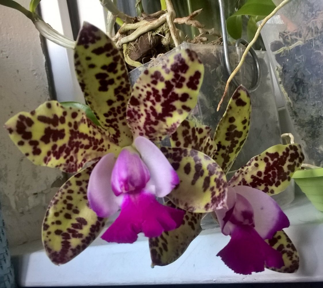@дистира, она ещё маленькая, как разрастется в большой куст это будет то ещё цветастое шоуВ самую жару расцвела Cattleya mossiae от Карге получала 2.07.18, второе цветение и опять одним цветком.