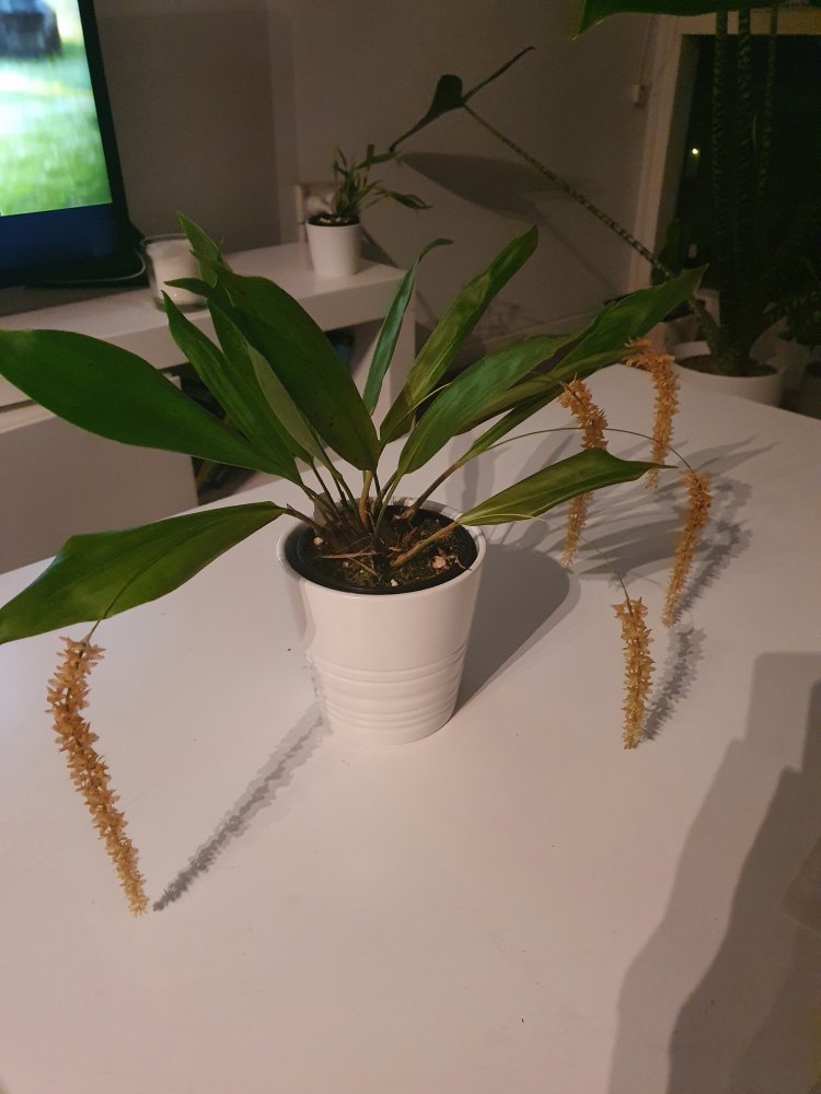 На стене в квартире?)А как полив осуществляете?Посажен в прямоугольный воздуховод пластиковый 7,5см глубиной, а сверху решетка для водосточной трубы и в мет.коробе несколько таких блоков и на стене висят. Внутри блоков кора и сверху мох![]()