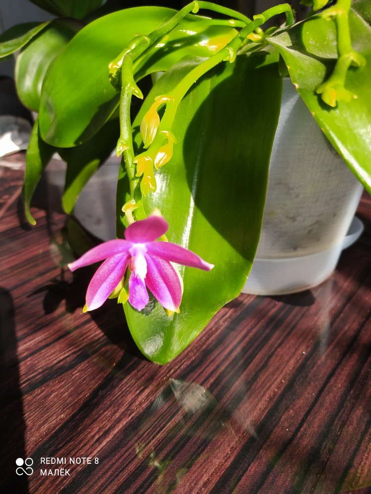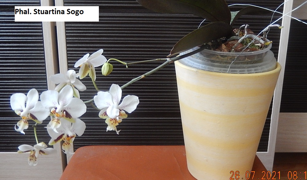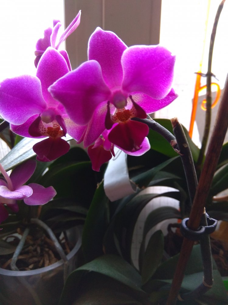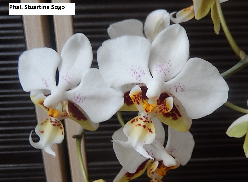 Также первое цветение Phal. LECO Fantastic получала 28.03.19 и гроздь Phal. Stuartina Sogo получала 14.11.19. Стюарту никак не могла место найти где бы сфоткать, цветонос" в свободном полёте", там где висит - солнце отсвечивает, так что простите если не очень красиво.