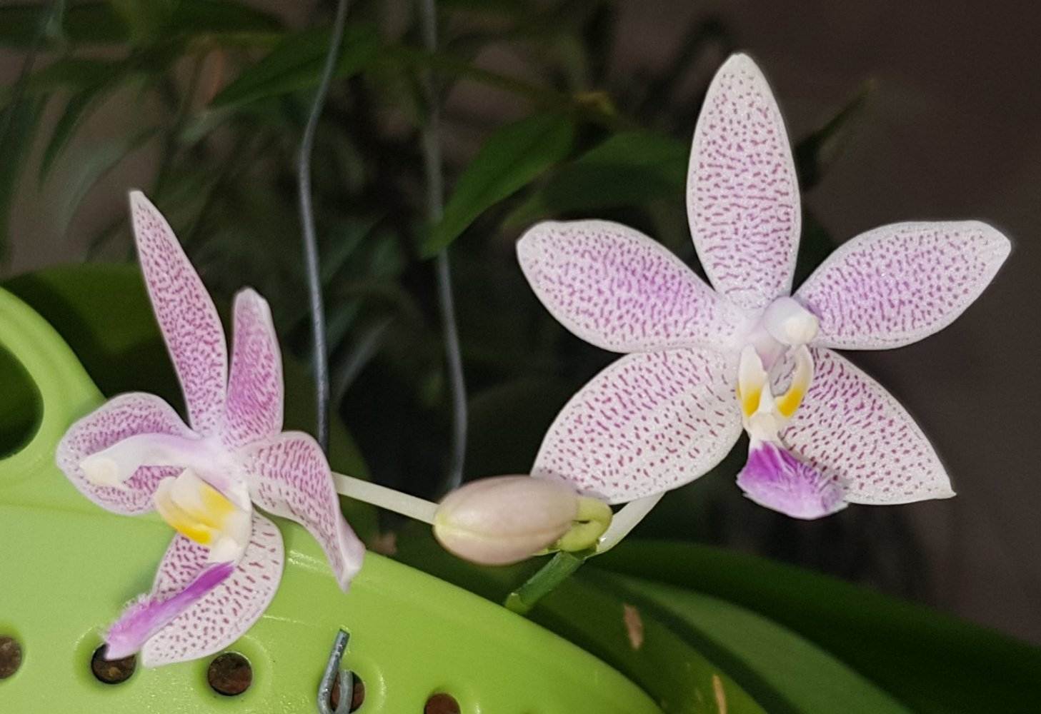 Да, в орхидариуме. Второй экземпляр тоже растит бутончик.