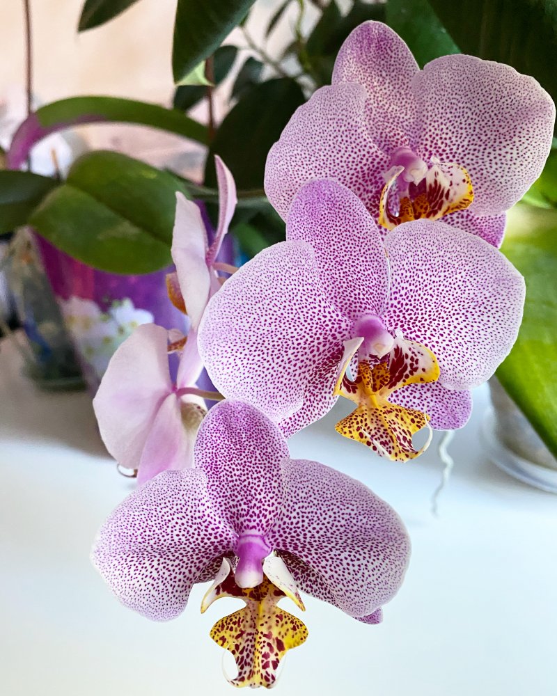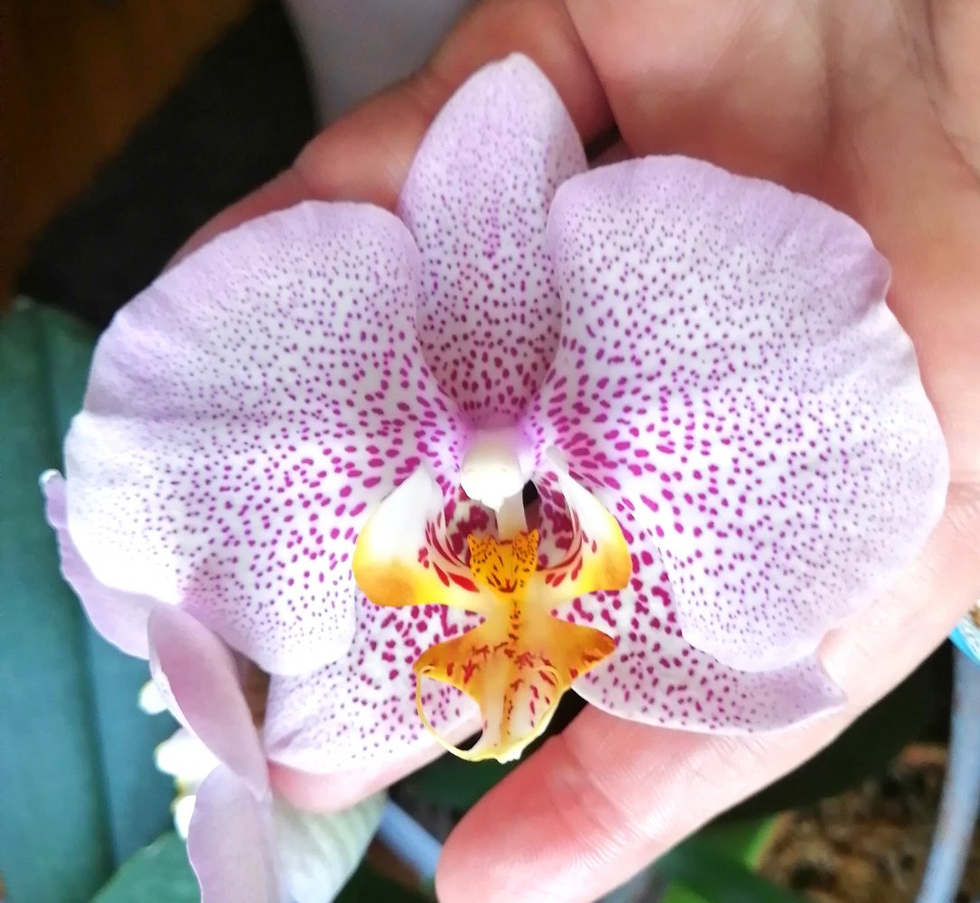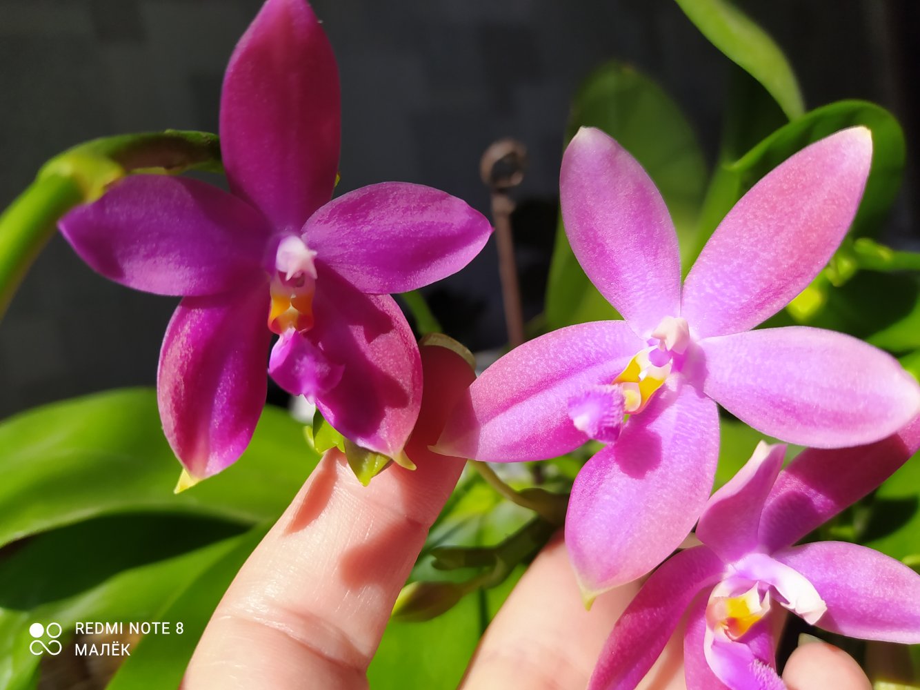 А вот и мойЗацвел P. Manhatten, два крупных цветка с разной по окрасу губой. Цветы держит долго, месяца 2