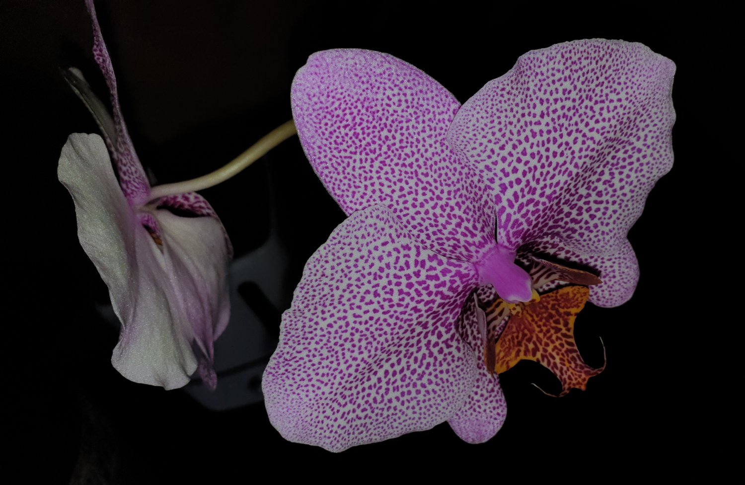 Зацвел P. Manhatten, два крупных цветка с разной по окрасу губой. Цветы держит долго, месяца 2