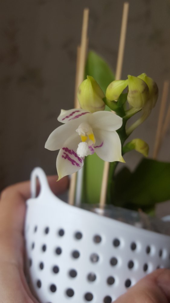 Выглядит как гибрид психопсисаOnc. Mariposa alba https://passiflora.ru/product_info.php/products_id/259069 получен три года назад, первое цветение. 2 цветочка. Рядом Pulcherima.