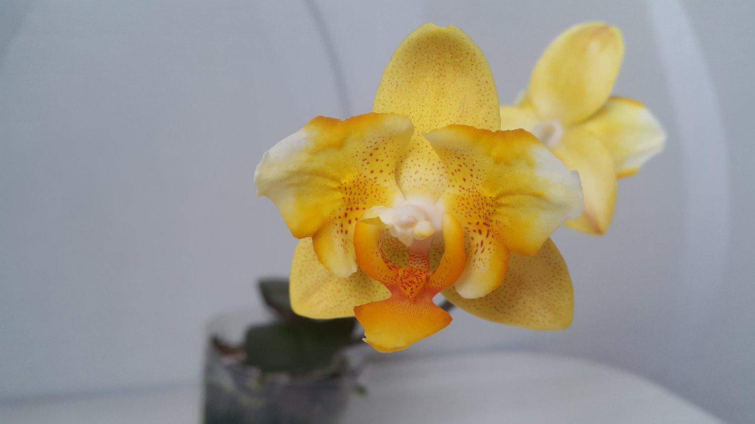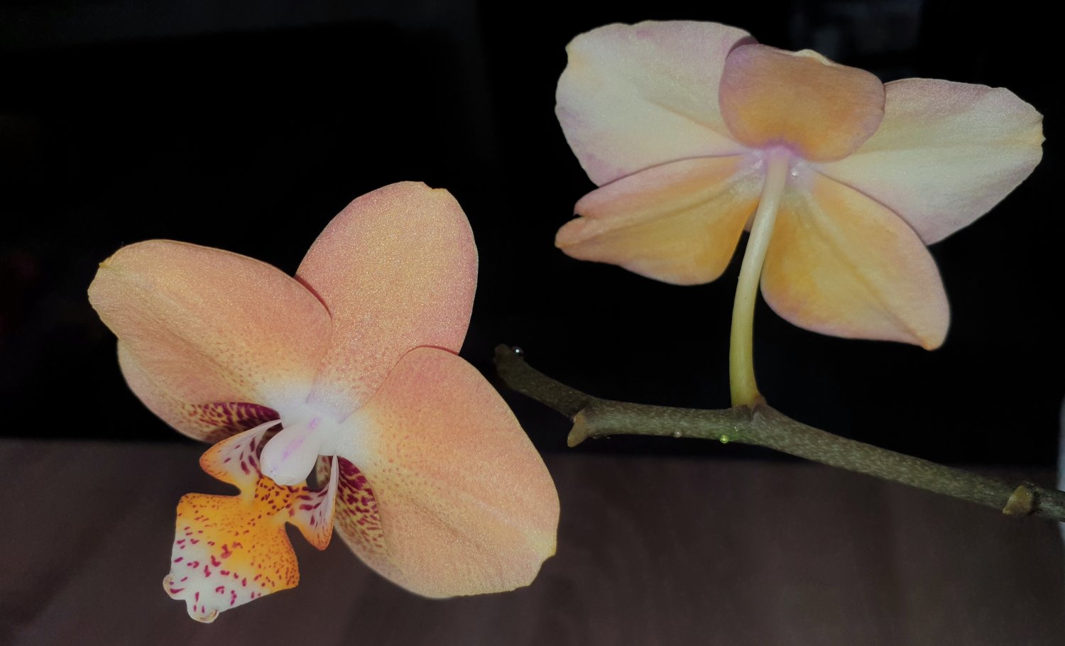 Со вспышкой более правильно основной цвет, на последнем фото, без вспышки, поймала лёгкую розовинку на колонке и обратной стороне цветка. Очень красивые переходы цвета. Цветёт долго, под конец цветения выцветает почти до палевого.Имхо Pulcherima стоит снять на темном однотонном фоне чтобы подчеркнуть нежный цвет и фактуру, на этом несколько теряется. Цветение очень красиво.Onc. Mariposa alba https://passiflora.ru/product_info.php/products_id/259069 получен три года назад, первое цветение. 2 цветочка. Рядом Pulcherima.