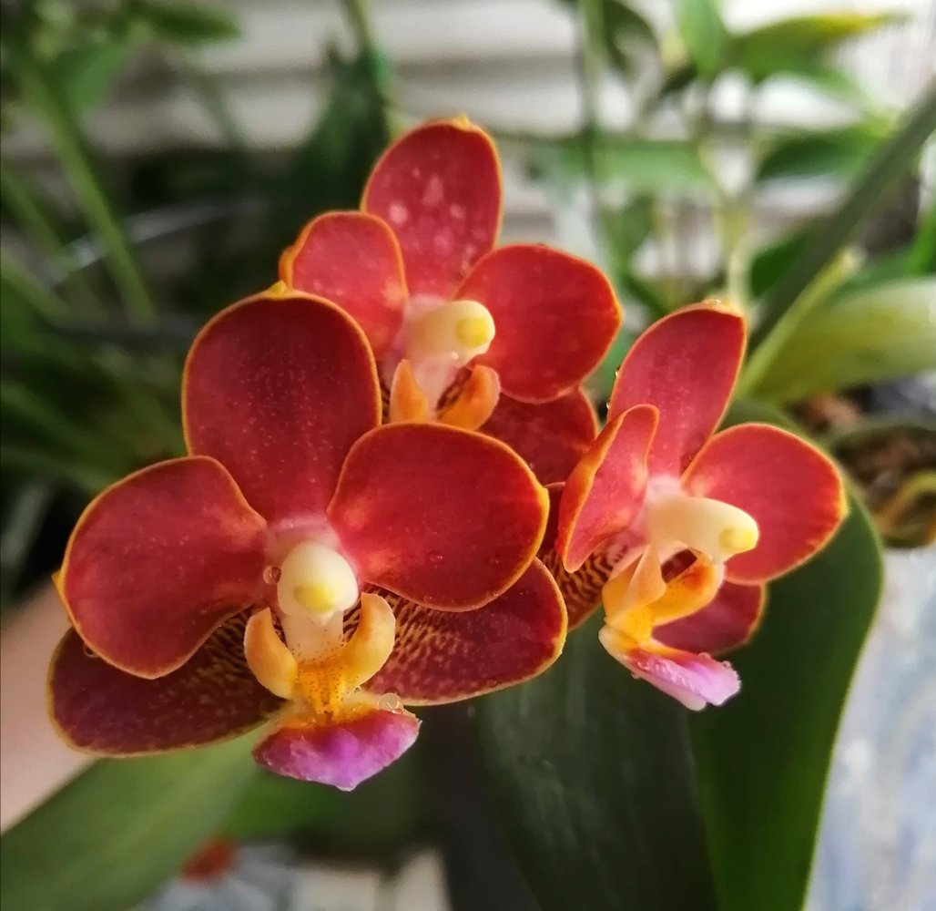 Хоть и пересорт, но красавец! Ожидался Leopard Prince Golden Leopard, а цветёт уже второй раз Sogo Diamond. Окрас не изменяется на цветке, всегда чёткое расположение крапа. Цветок около 7см, аромата нет. Зацвел в очередной раз Yaphon Perfume Coffee. Цветы очень насыщенного окраса в этот раз, прям кирпично-бордовый, потом рыжики будут. Конечно очень ароматный. Цветочки 3-3.5см.