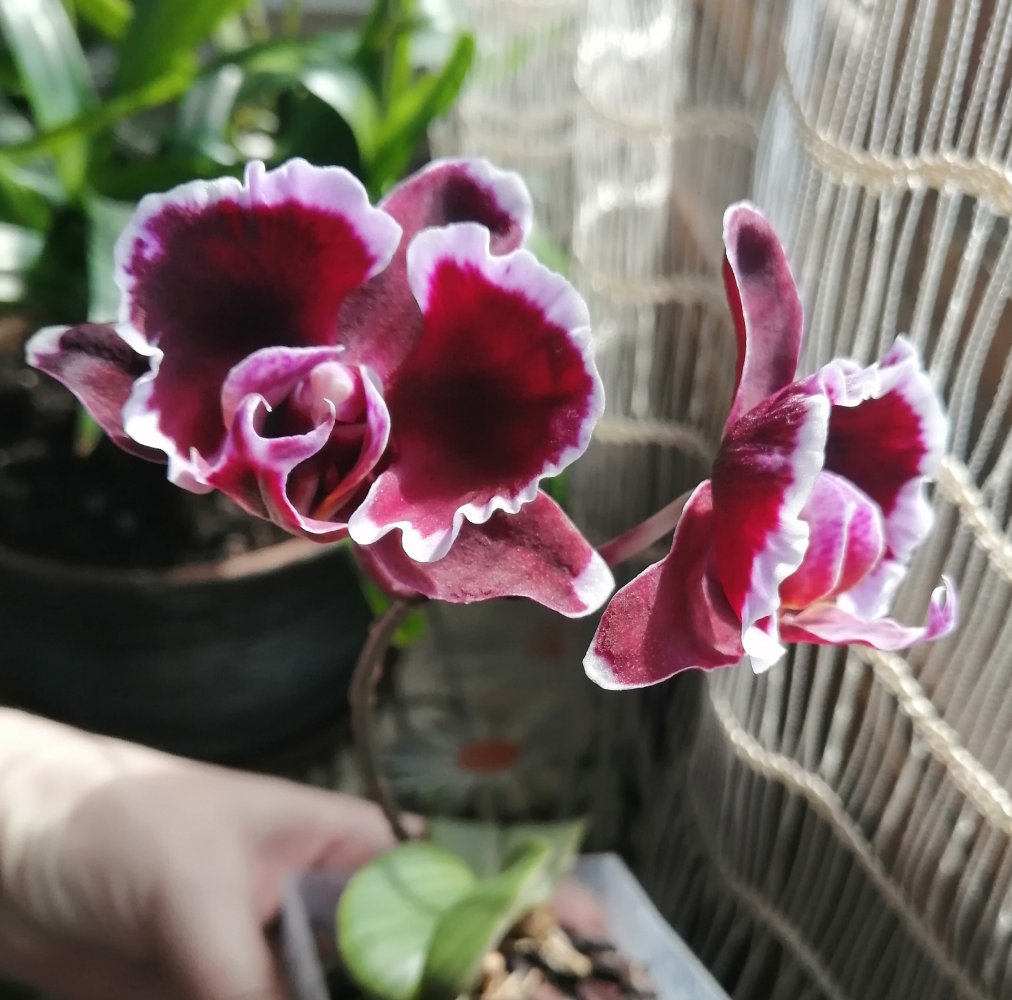 Цветут мои вандовые.20210816_161504.jpgэто v.lamellata×v.brunea× v.Mimi Palmer. Цветет 4-мя цветоносами! А пахнет! Карамелью!20210816_161447.jpg20210816_161410.jpg20210816_161422.jpgv. Pink Delight×v. Somsry pink, аромата нет, зато цветы огромные!20210816_161259.jpg20210816_161240.jpgэто раскрывает второй цветонос ванда с утерянным названием. Обязательно поищу в заказах! Цветы тоже огромные, со временем становятся темнее и бархатистее. Роскошная!