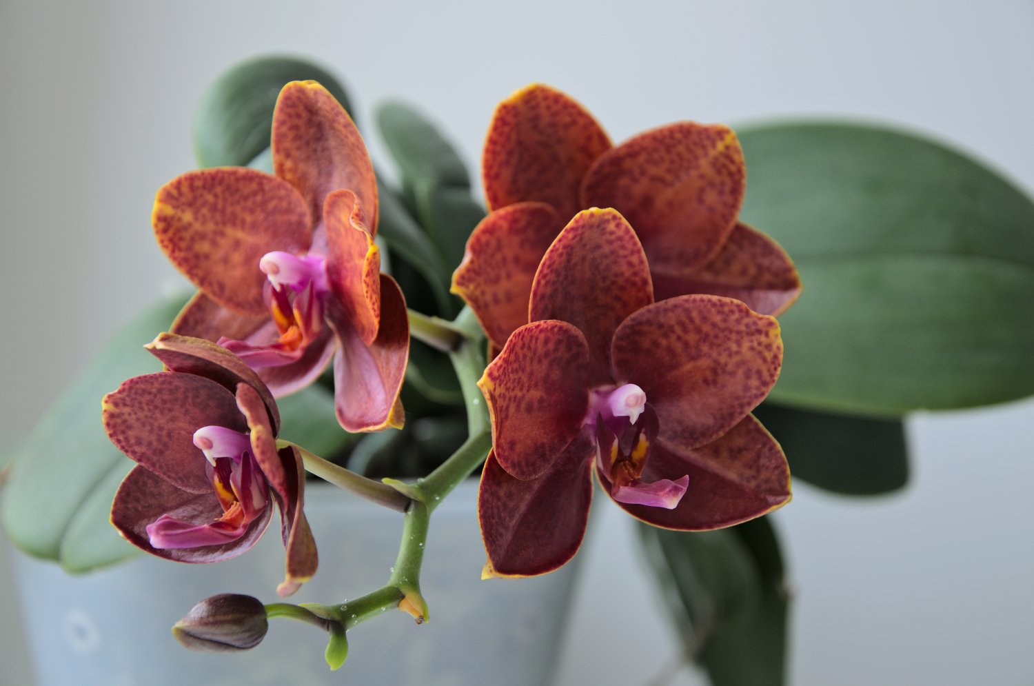 Спасибо. У первой сильно искажается цвет. На фото больше коричневого, меньше голубого. И фиолетовые язычки ярче в жизни. Красотка необыкновенная! Цветы некрупные, сама компактная, а цветет по 3-4 раза в год, и всегда не одним цветоносом