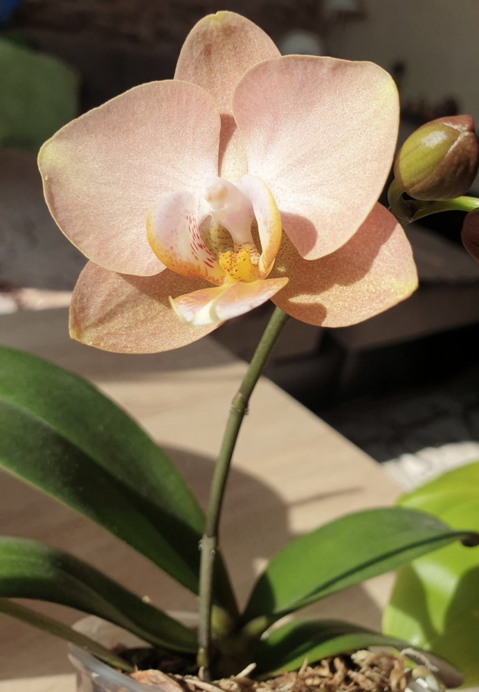 Продолжает раскрываться красавец Sogo Diamond-цветы огромные, порядка 10см, набрал полностью цвет самый оранжевый из фаленопсисов 😇 Golden Diamond-цветочки плотные восковые и аромат 🥰, второе цветение малыша Summer breath-теперь форма цветка как на промофото.