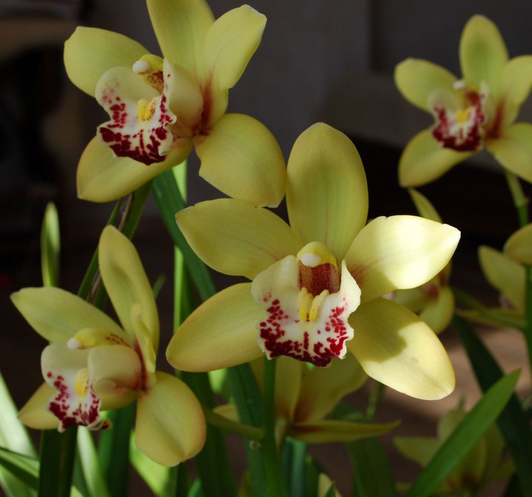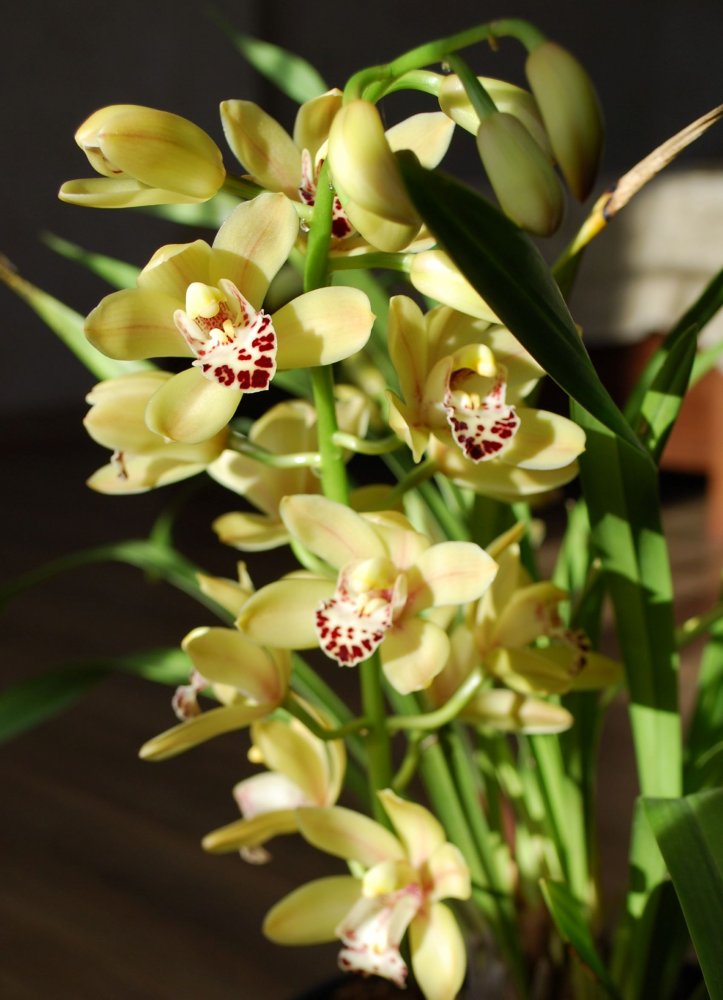 Красавцы! Мои наоборот сейчас на покое, наращивают листья и бульбы к следующему сезону. Может это из-за того что в другом полушарии.Цветут цимбидиумы, все живут у меня давно, последние три года цимбы вообще не покупаю, места нет )