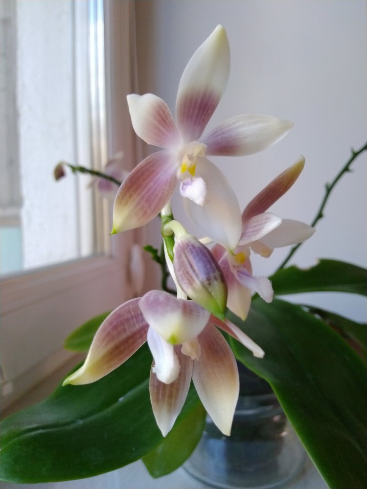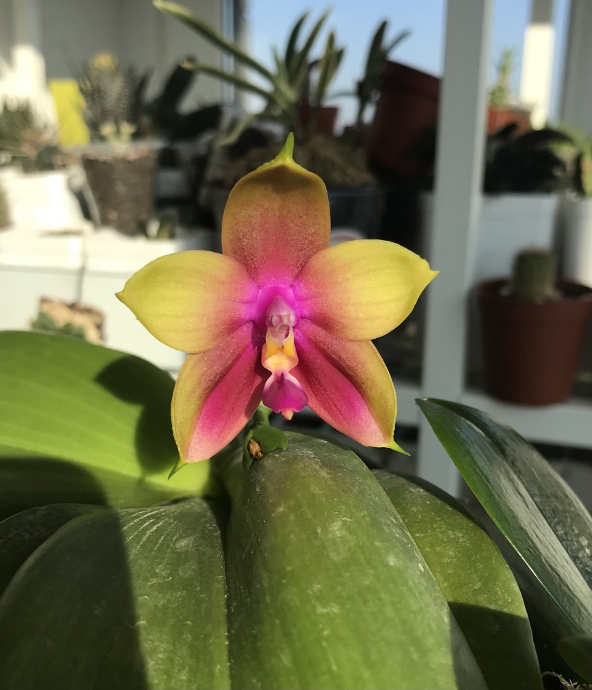 Так хотелось показать livida x coffee, но камера вообще не хочет нигде передавать её реальный цвет, лишь у окошка проявились на фото оттенки, которые у ней есть ( Она пошла в основном в livida, розового в ней нет и от coffee пока лишь намёки. Очень красивый, спасибо, что влюбили в тетрасписы 🥰 Какая форма лепестков, кожистость покрытия, цвет... Губа пушистая как птенец лебедя 🤯🙂