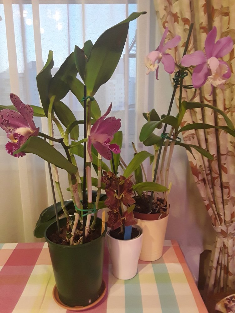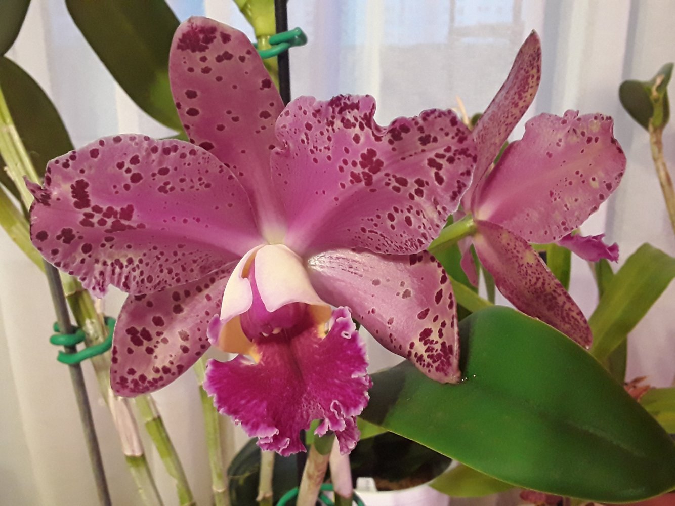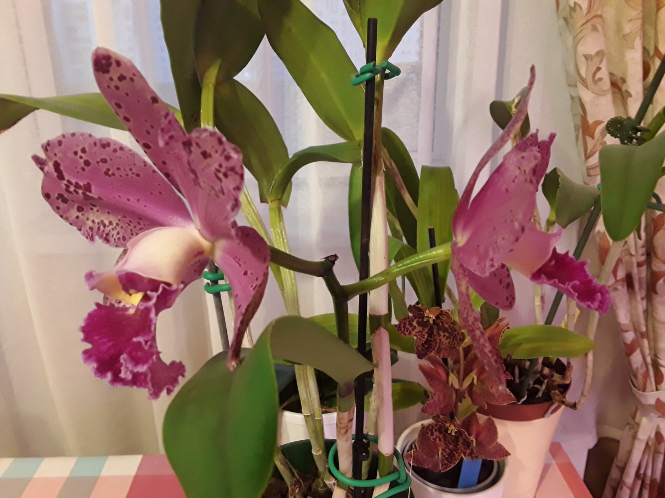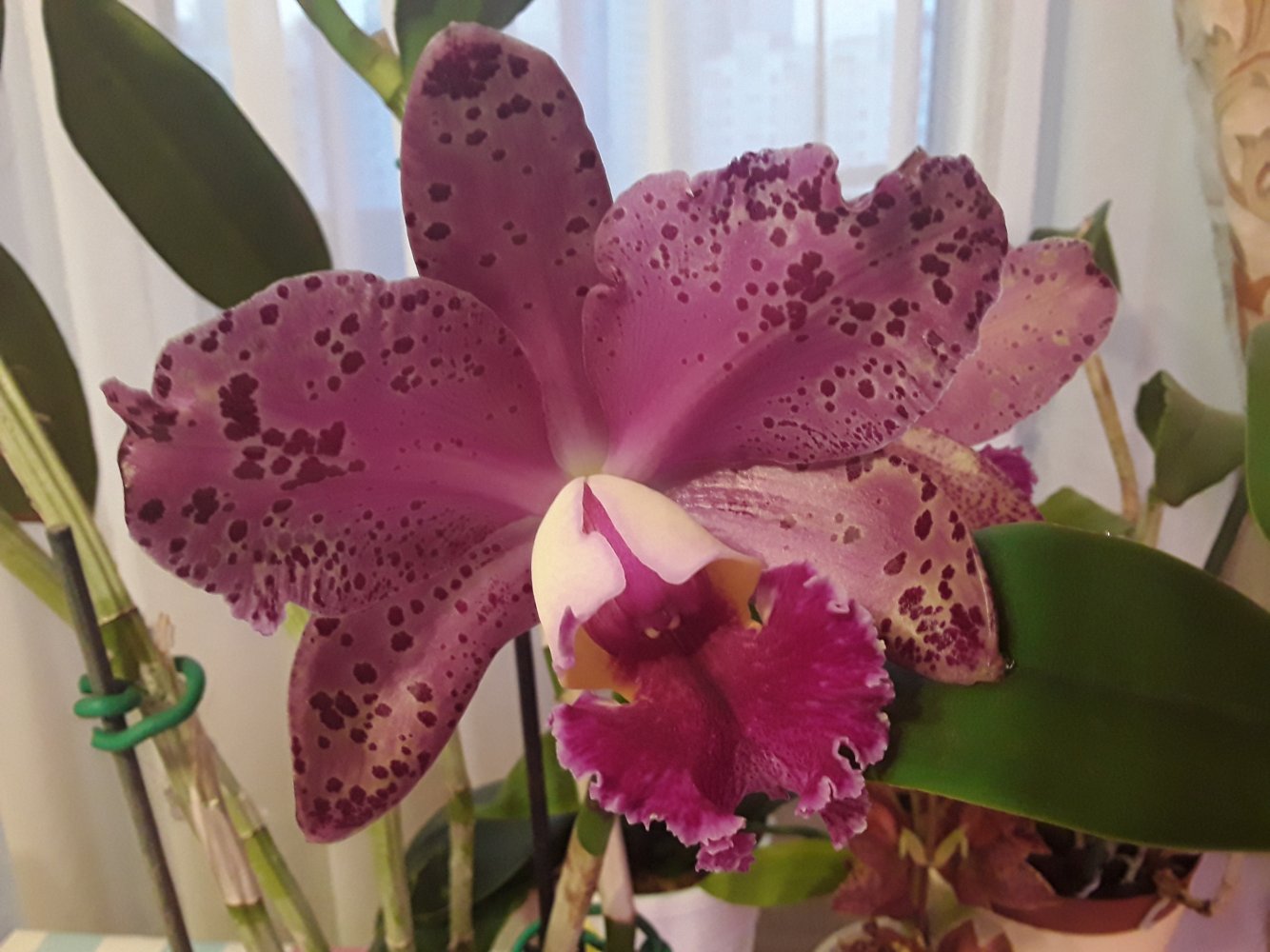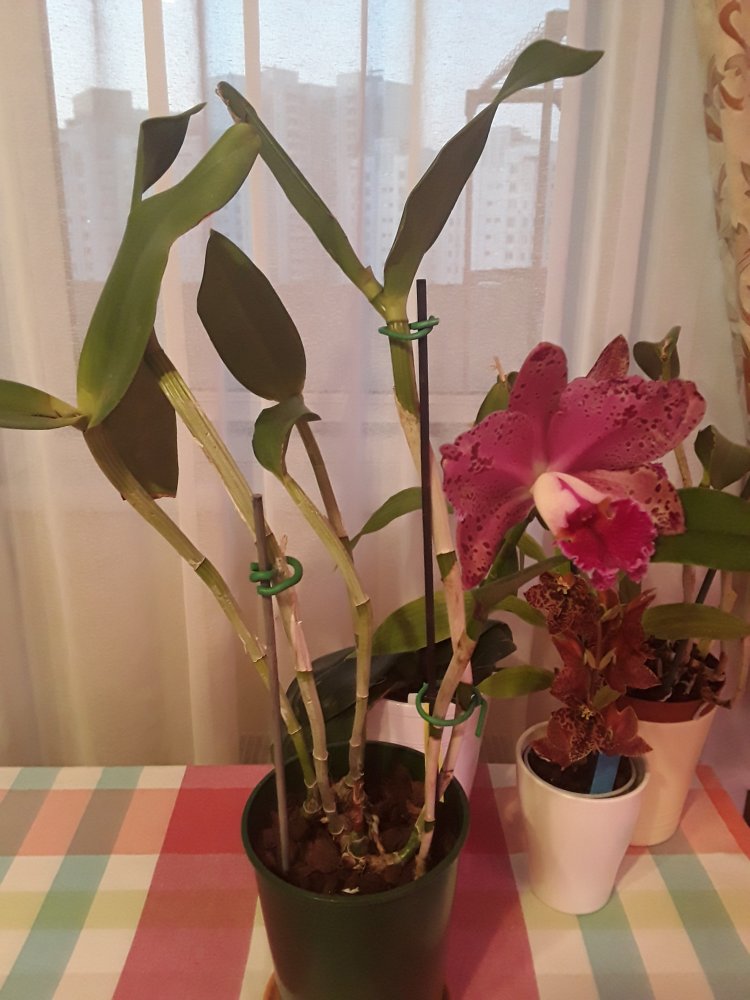 Blc. Durigan "Hercules ", Lucke. Первое домашнее цветение, получена была не так давно взрослым, ранее цветшим растением. Была совершенно не адаптирована, посокльку из свежего бразильского импорта. Лето жила на улице в тени, очень быстро пришла в себя и двинулась в рост. Размеры самой каттлеи огромные, что плохо сказалось на пересылке - была вся поломана. Поэтому такие огромные каттлеи имеет смысл покупать подростками, чтобы минимизировать механические повреждения растения в дороге. Цветы шикарные - огромного размера - 12- 13 см, яркого окраса. В первой половине дня сильнейший цветочный аромат на все помещение, напоминает гиацинт.