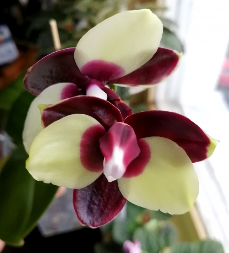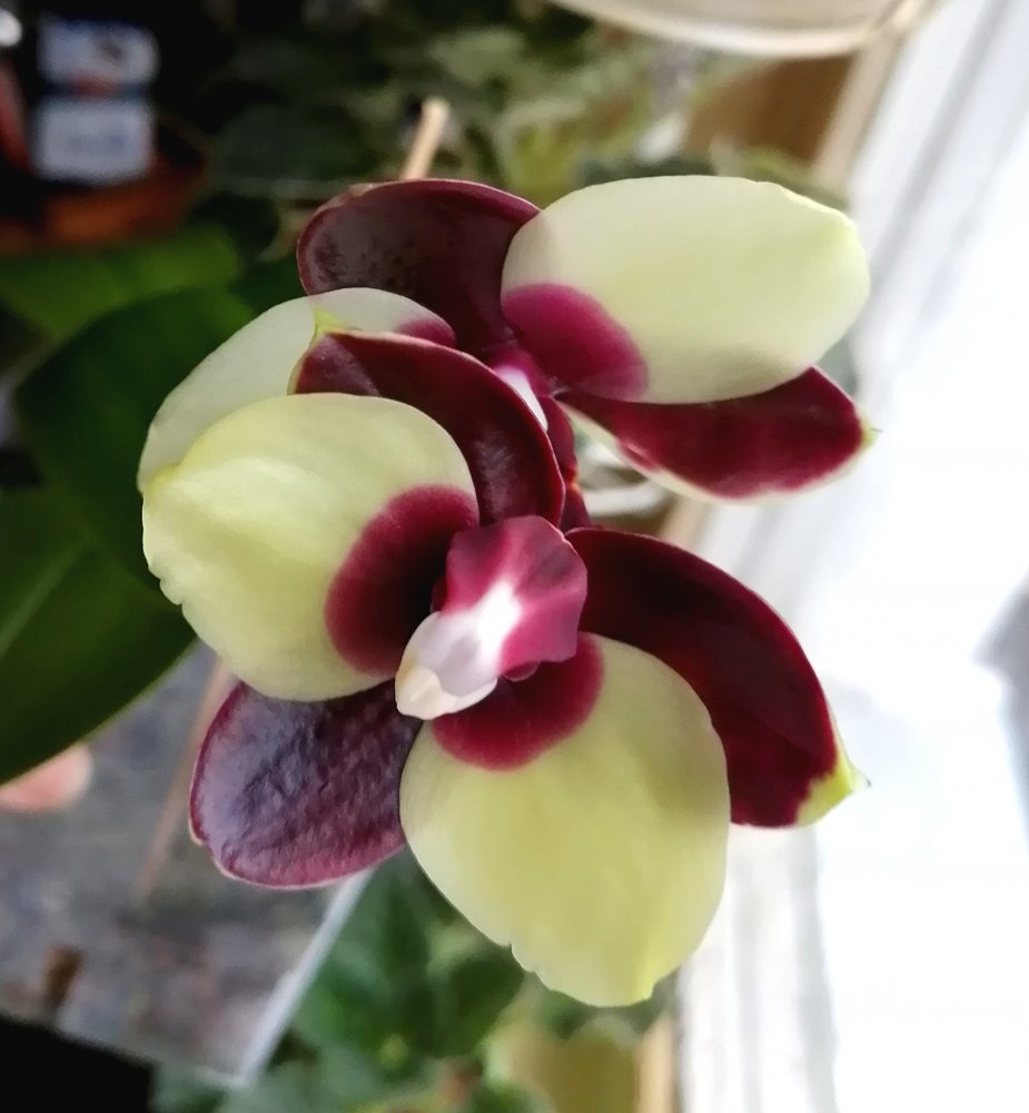 Mituo Diamond Panda распустила второй цветок кверх ногами 🤣 Первый набрал 6см по петалиям. Очень плотные глянцевые цветы. Аромата нет. (может пахнет в другое время суток)