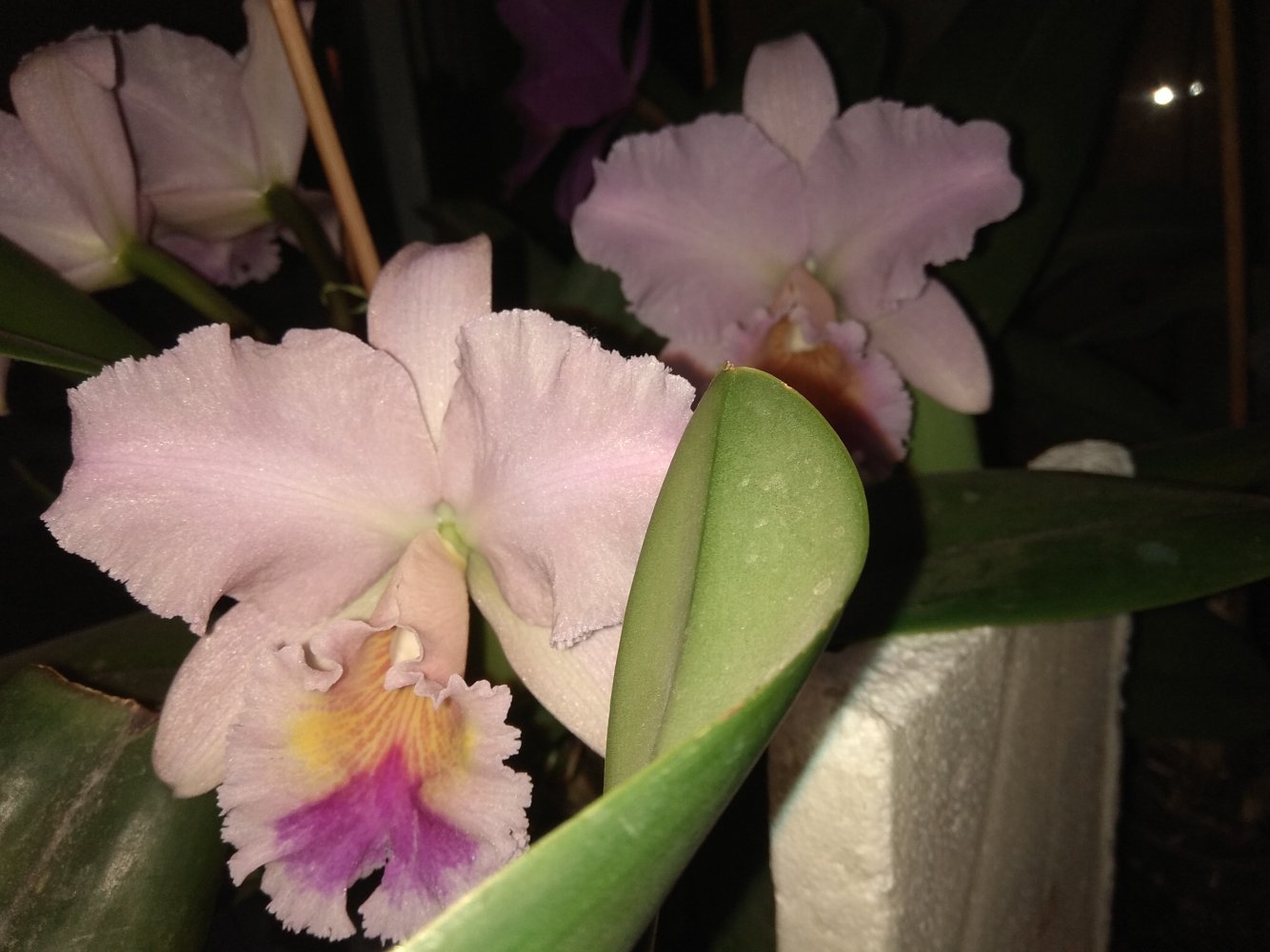 Blc. Mem. Crispin Rosales и Blc. Georg King Serendiphty (4 цветка). Со вспышкой и без (3-е и 5-е фото). У Blc. Georg King Serendiphty второе домашнее цветение.