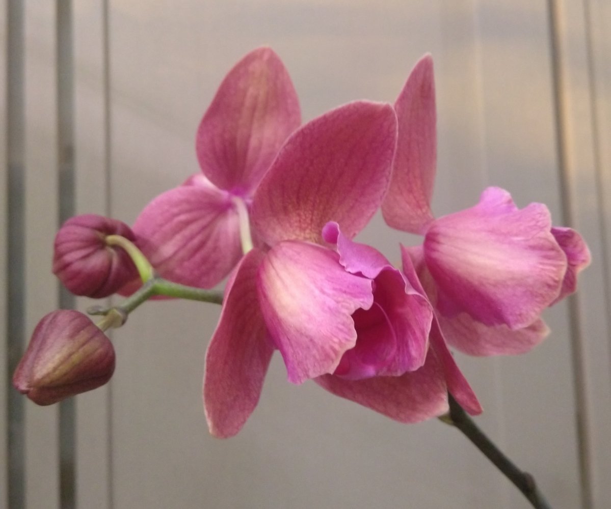 Во времена «Планерной» помнится, набрала кучку фаленопсисов от Петера. Они были в наличии, рублей по 350, посевы. Кто дорос до цветения, не все угодили, были подарены. А этот задержался, нравится он мне. Очень ароматный, цветок крупный, яркий , «пластиковый» .Размер листочков и цветов очень гармоничны. В вариантах цветения, такой встречается. Имя его