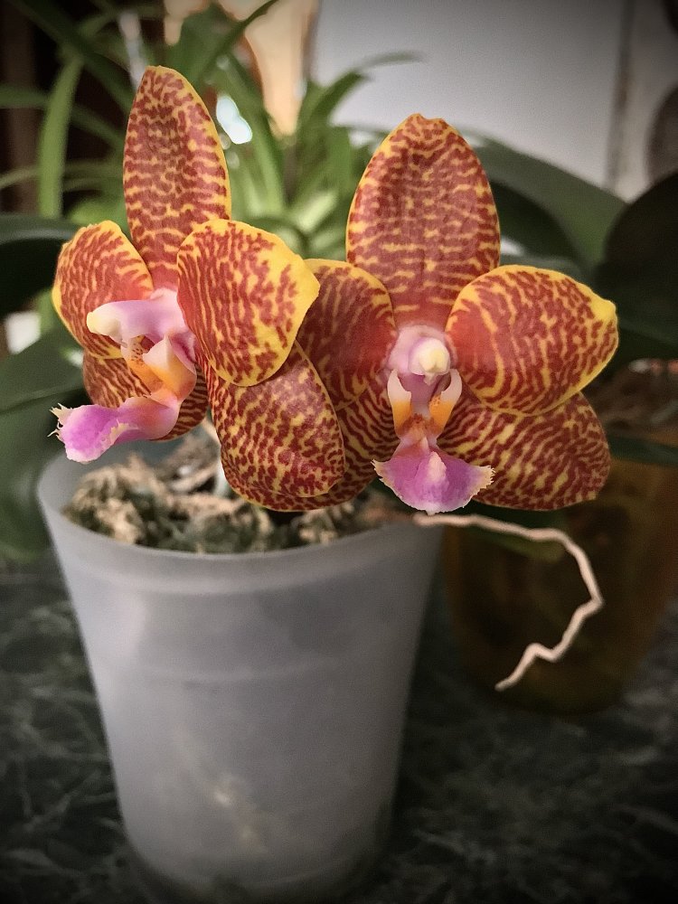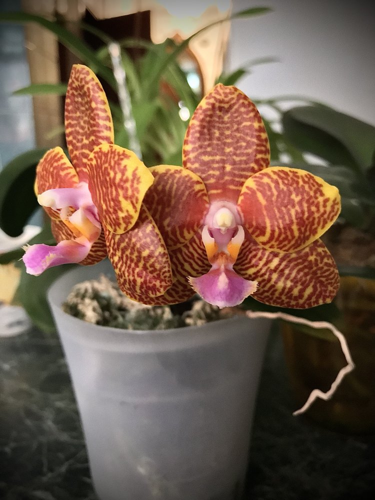 Одна из первых моих орхидей, в ноябре этого года ей исполнилось 30 лет:), если точнее, то это вторая моя орхидея. С неё началась любовь к пятнистым листочкам🥰 (растение неоднократно омолаживалось, детковалось, однажды пыталось погибнуть).