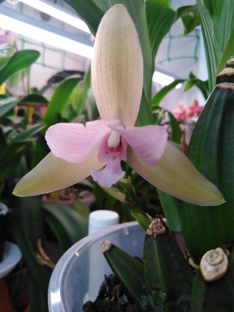 Этот фаленопсис растет на самом деле как сорняк, это спутанный клубок цветоносов, деток, бутонов, корней. Цветёт практически непрерывно, и в то же время постоянно даёт новые детки, со временем разрастается в большой куст. В горшке сидят две детки срезанные с материнского куста полгода назад. Субстрат - что попало, что было под рукой, очень крупная кора, уголь, рваный сфагнум, камни, перлит, остатки разных смесей. Освещение даю очень яркое, такое же как вандам и каттлеям.
