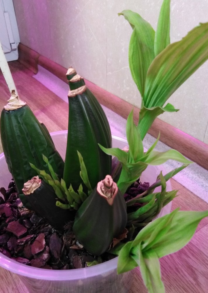 Ликаста Tricolor от Ecuagenera, моя радость и разочарование. Получила в сентябре 2019 г., почти сразу выпустила новые росты и процвела, а дальше я ее благополучно забросила, восточное окно без подсветки, поливы, подкормки без какой-либо системы ( когда стояла без листьев, поливала редко и мало и не кормила ), в общем , ничего от нее не ждала и вот радость - в конце ноября обнаружила росты, переставила под свет, увеличила полив.