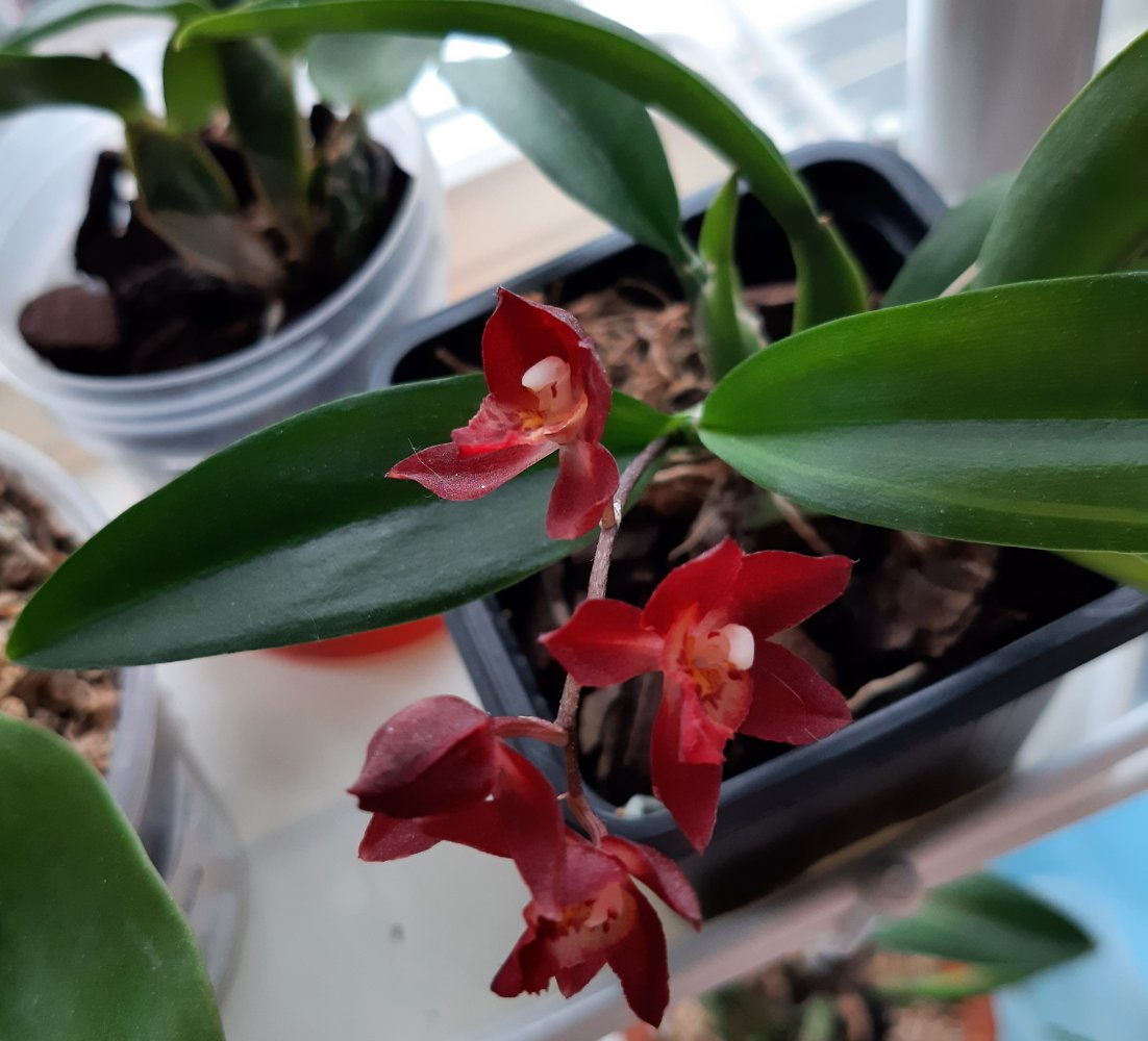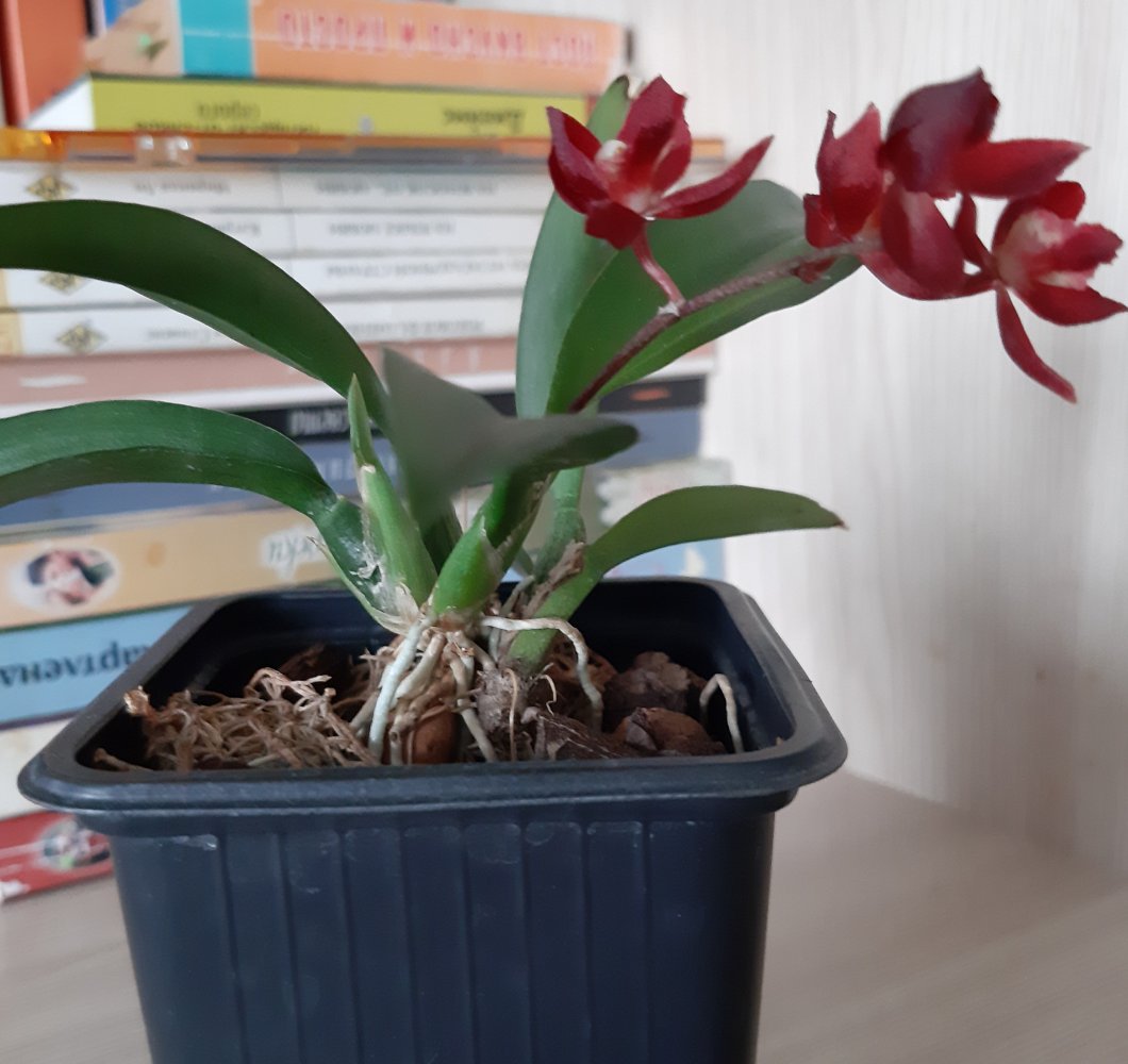 Завела моя Meshaara Chian-Tzy Ruby 'CT-Golden Chocolate'. Пришла от Мики в июне 2019г, с одной зрелой бульбой и ростом. Процвела зимой с дозревшего роста. За весну-лето-осень нарастила ещё 2 бульбы и завела снова. Миниатюрная, хорошенькая, темно-красные бархатные цветы 2 см. Не пахнет, но очень меня радует