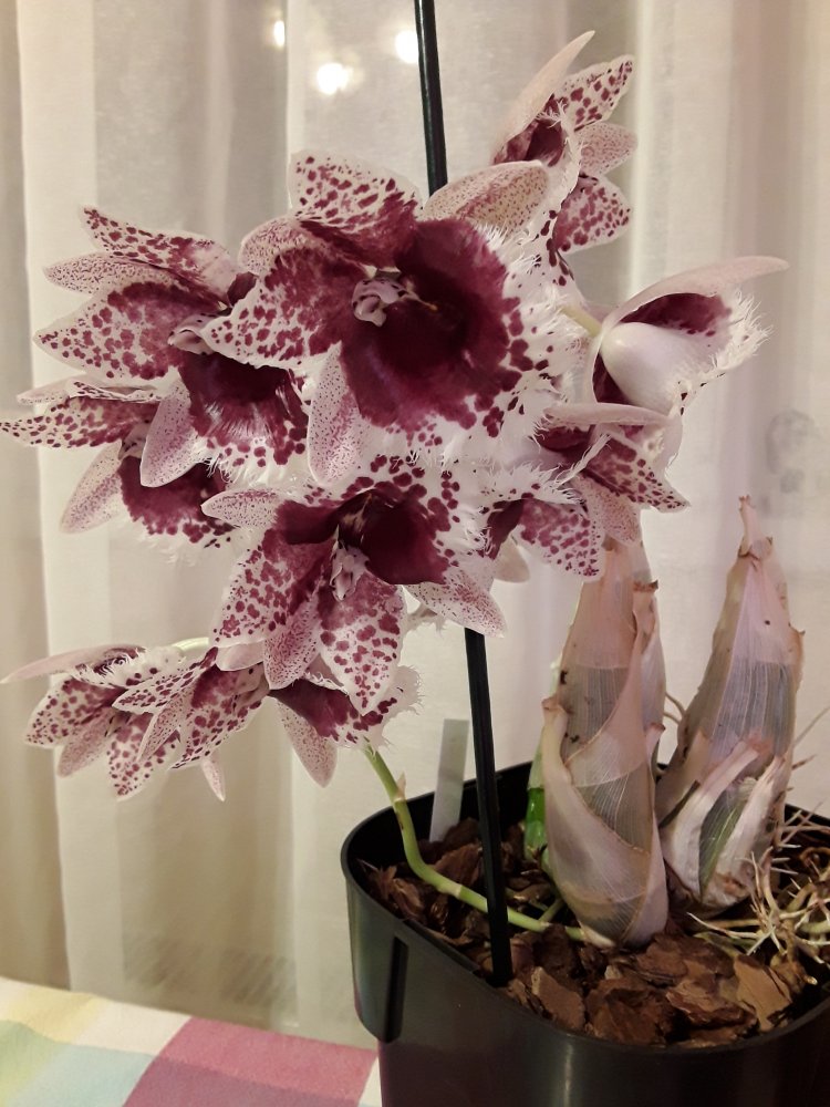 Ликаста Скиннера, она же Lycaste virginalis (RD001) от Akerne Orchids, получена 05.10.2021 г в идеальном состоянии. писала про нее и отзыв, и в теме приживаемости, поэтому уже повторяться не буду. Это вариант цветения крупного экземпляра от поставщика, второй вариант этой же ликасты, но с другим кодом - более мелкое само по себе растение, цветонос тоже мельче (сейчас также на стадии роста). Цветок с загнутыми лепестками и в точности, как на фото в каталоге. Крупный, ароматный. Хороша, особенно с учетом, что нигде ее у других поставщиков в продаже не. Однако все же которая у меня была раньше от Вихманна (погибла), была больше на видовую похожа и нравилась больше. Но как говорится, на безрыбье и рак рыба)). Эта очень похожа на гибридные ликасты от Карге.