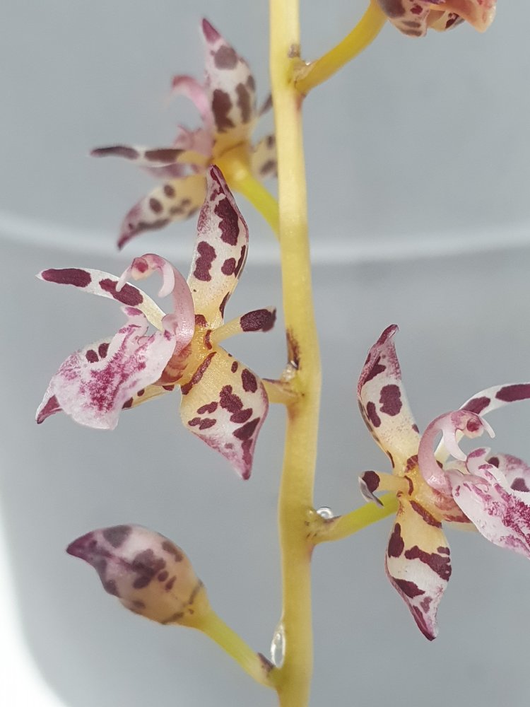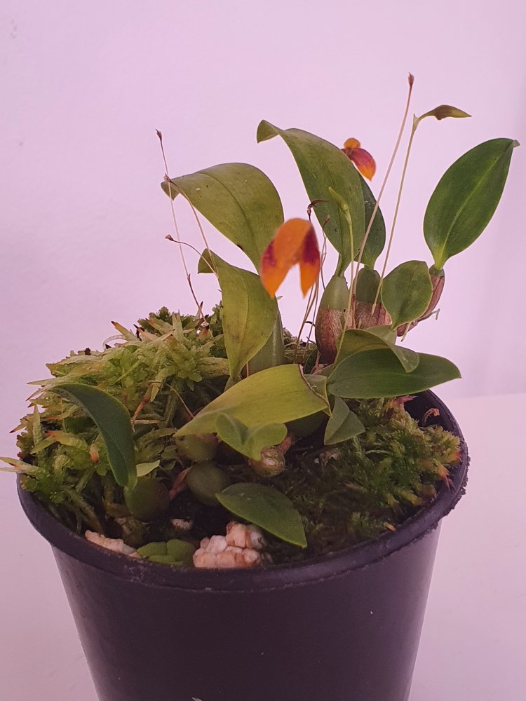 Маломеры уже радуют цветением, а вот крупномеры как rochussenii asperata pandurata пока что не хотят цвести. Пандурату пересадил тоже в живой мох с пенопластом, посмотрим может поможет. Хоть клещ от неё отстал после пересадки ттт. В общем, начал выращивать их по той же схеме что и дендрокайлумы - мох, дистиллят, мокрые "пятки" (постоянно вода в поддоне) и усиленная вентиляция.