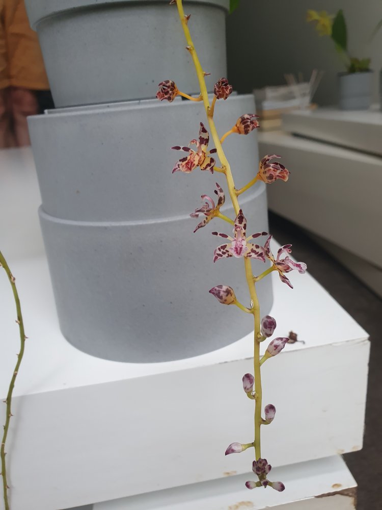 Thecostele alata, непрерывно наращивает цветоносы и цветет, боюсь представить какой длины могут достигать эти цветоносы, видимо скоро придётся подвешивать.