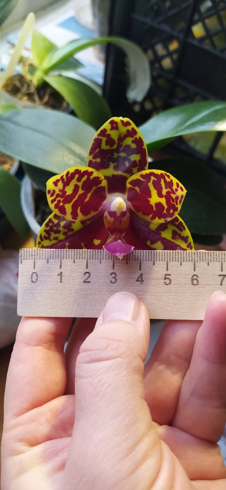 Приехал 1,5 года назад от Яфон. За это время нарастил корни и 1 лист. Потом полгода растил цветонос. Ещё месяца 1,5 надувал бутон. Очень неторопливый товарищ. Но это прям моё! Крупный, лаковый, ярко-желтый! И хотя нет штрихов, как на промофото, грешу на близость прожектора и пересвет.