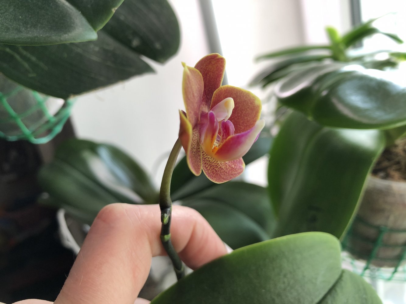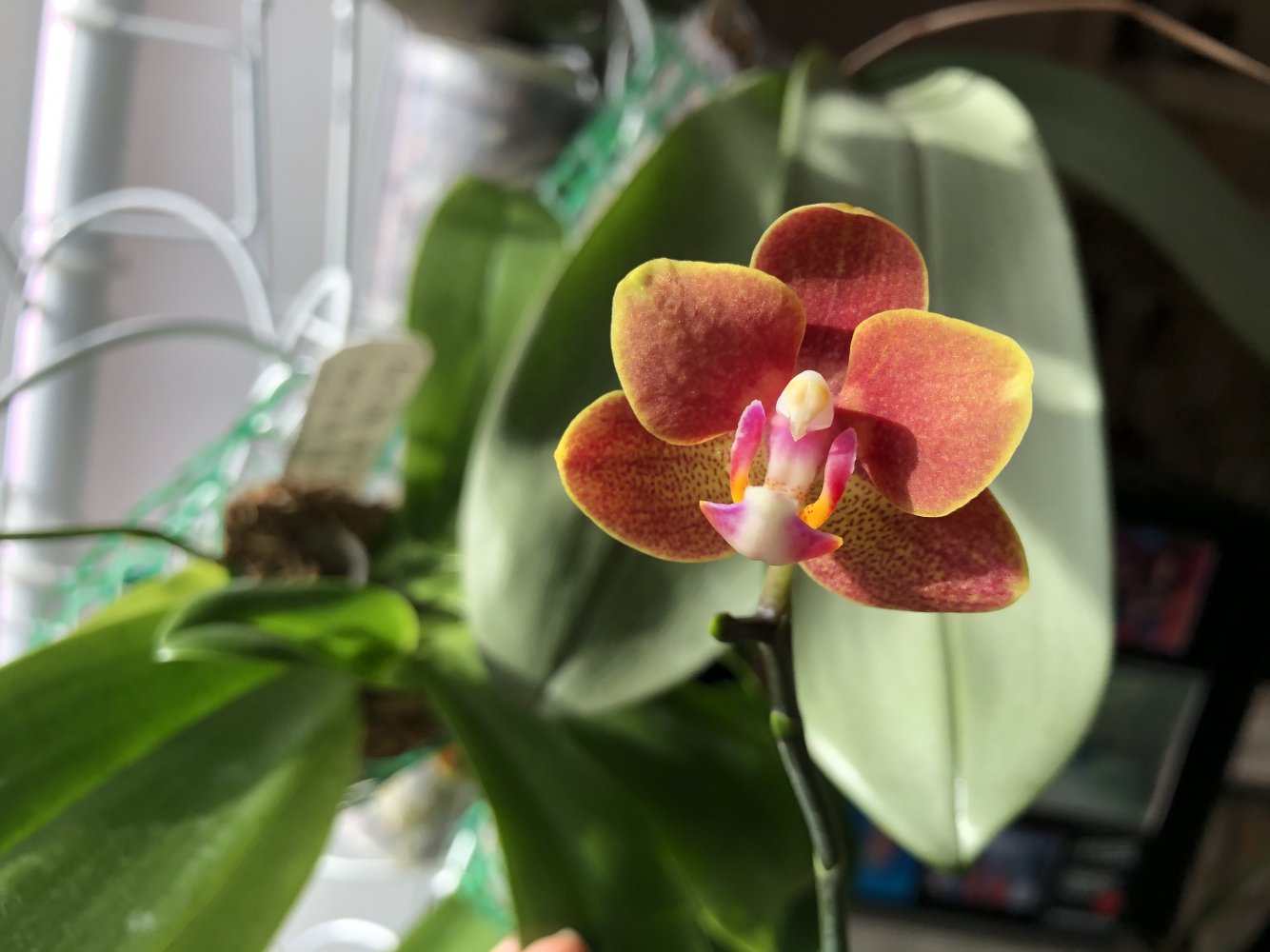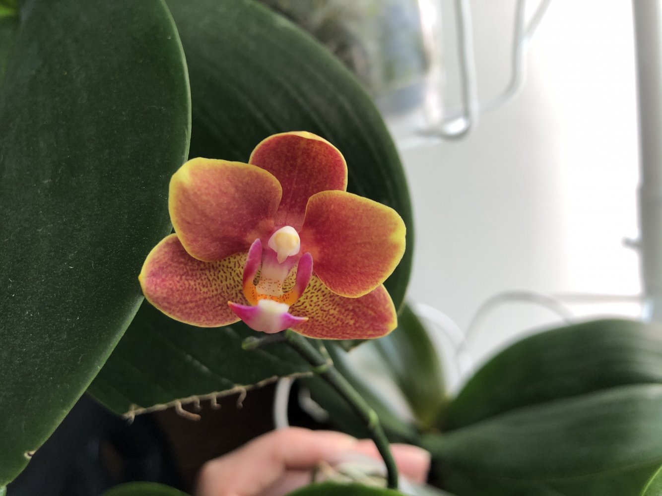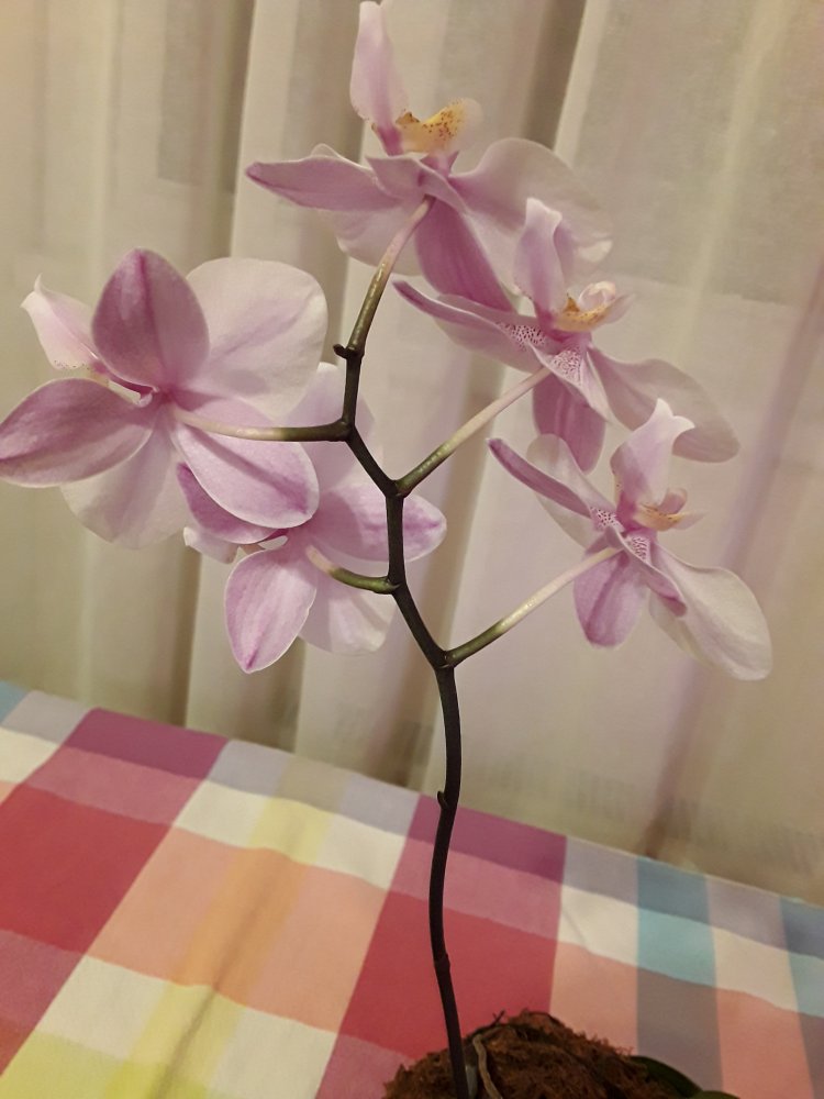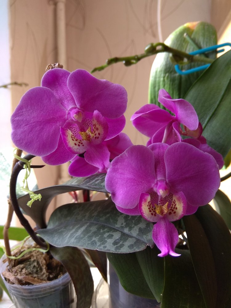 Trichopilia marginata, Ecuagenera. Второе домашнее цветение, получена больше 2 лет назад. Хотя на сайте поставщика цветение такое же, больше похожа на гибрид с tortilis. Растение достаточно миниатюрное, простое для домашнего выращивания. Адаптировалась после получения быстро и без особых проблем. Условия - теплое содержание, высокая влажность воздуха приветствуется, но проживет и без нее, частый полив и отличное освещение. В летний период растет на улице в яркой тени. Цветок крупный, около 7 см. Ароматная, очень напоминает аромат родстенницы - suavis, но его едва слышно вблизи цветка.