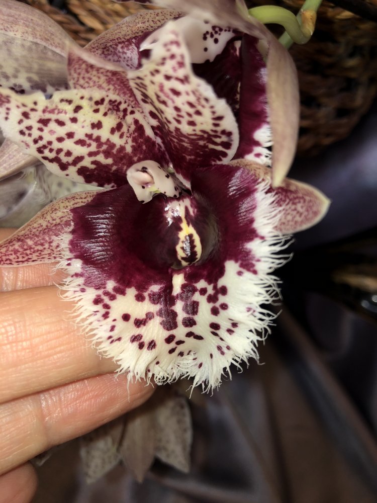 @Galina, Галина,спасибо!Для меня это растение-открытие.Цветение-полная неожиданность.На картинке это одно,но никогда не думала,что у меня вырастет такое чудо.Растение оказалось беспроблемным,просто ело,пило и росло😊Невероятен в красках,губа с бахромой.И запах😀Не резкий,не навязчивый.Извините за сравнение😊,как будто жвачку малость уже пожевали😊.Такое растение точно надо брать!😊