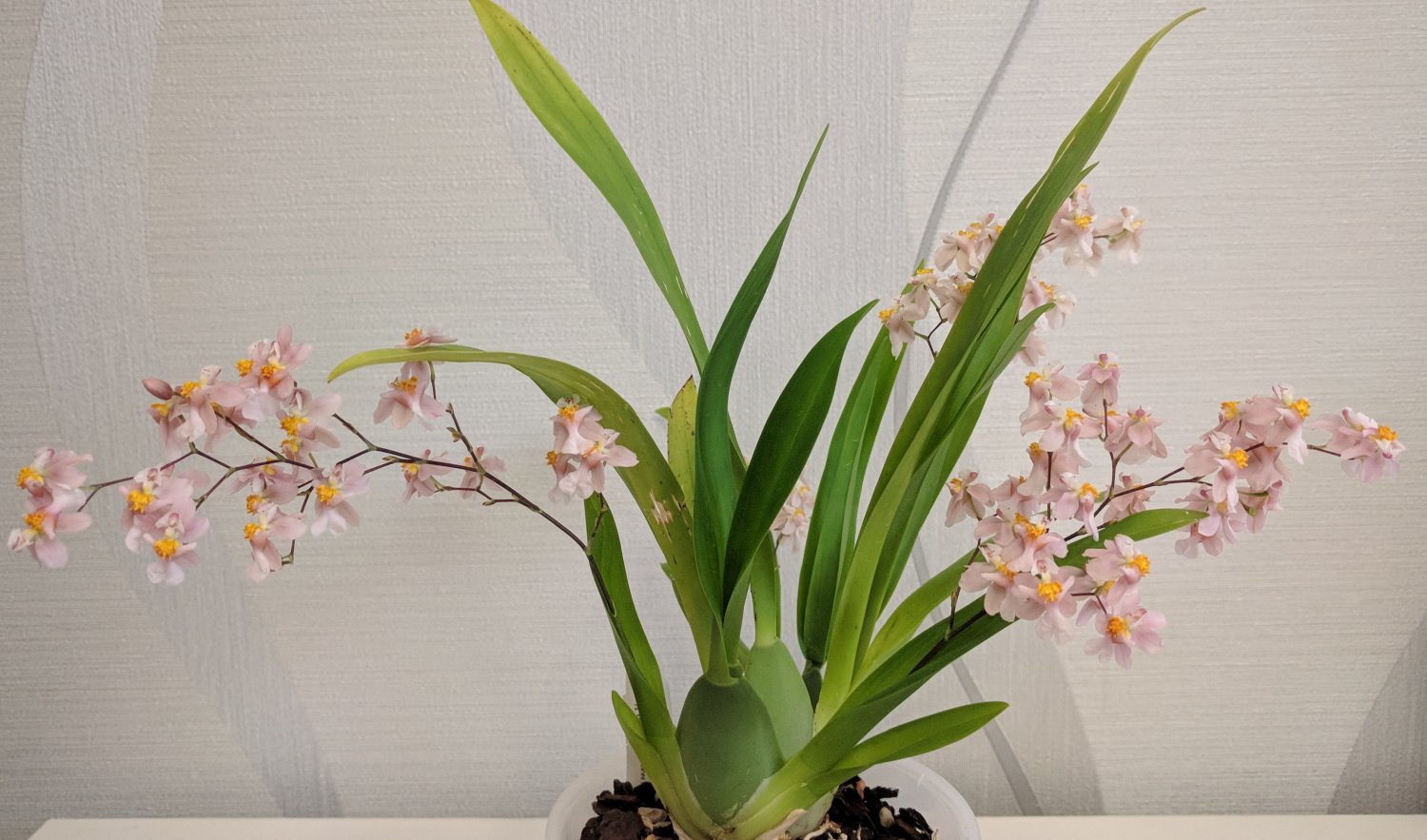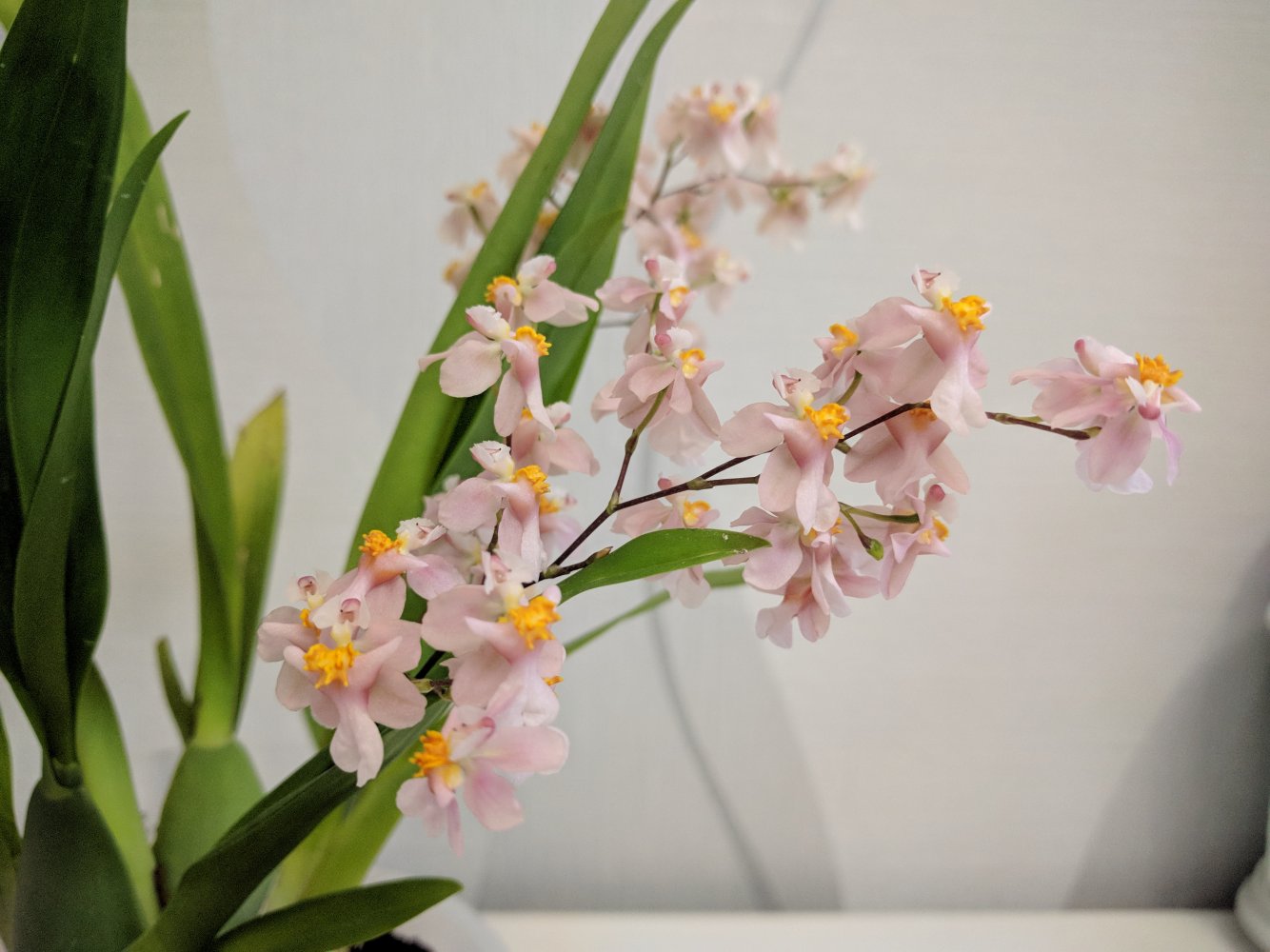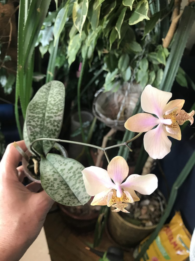 Очень интересный кросс получился, у меня цвёл, я выкладывала фотографию в теме цветения. Расцветает нежно розовым, больше на шиллериану похож, а потом набирает цвет, получаются очень нежные переходы от розового к жёлтому. Губа потрясающая, как у Филадельфии старого образца.Кросс стюартианы нобилис и шиллерианы я не понял совсем, при чем там был нобилис если от него ничего не осталось у ребёнка, на вид это чистый шиллер. У нобилиса жёлтые цветки