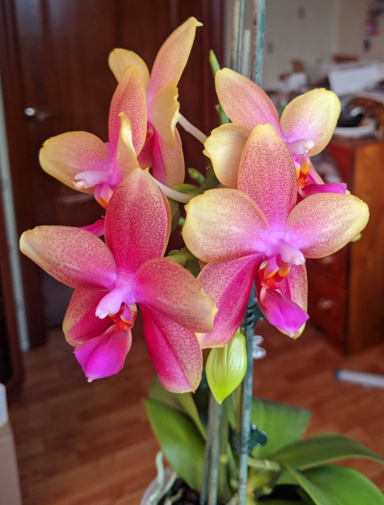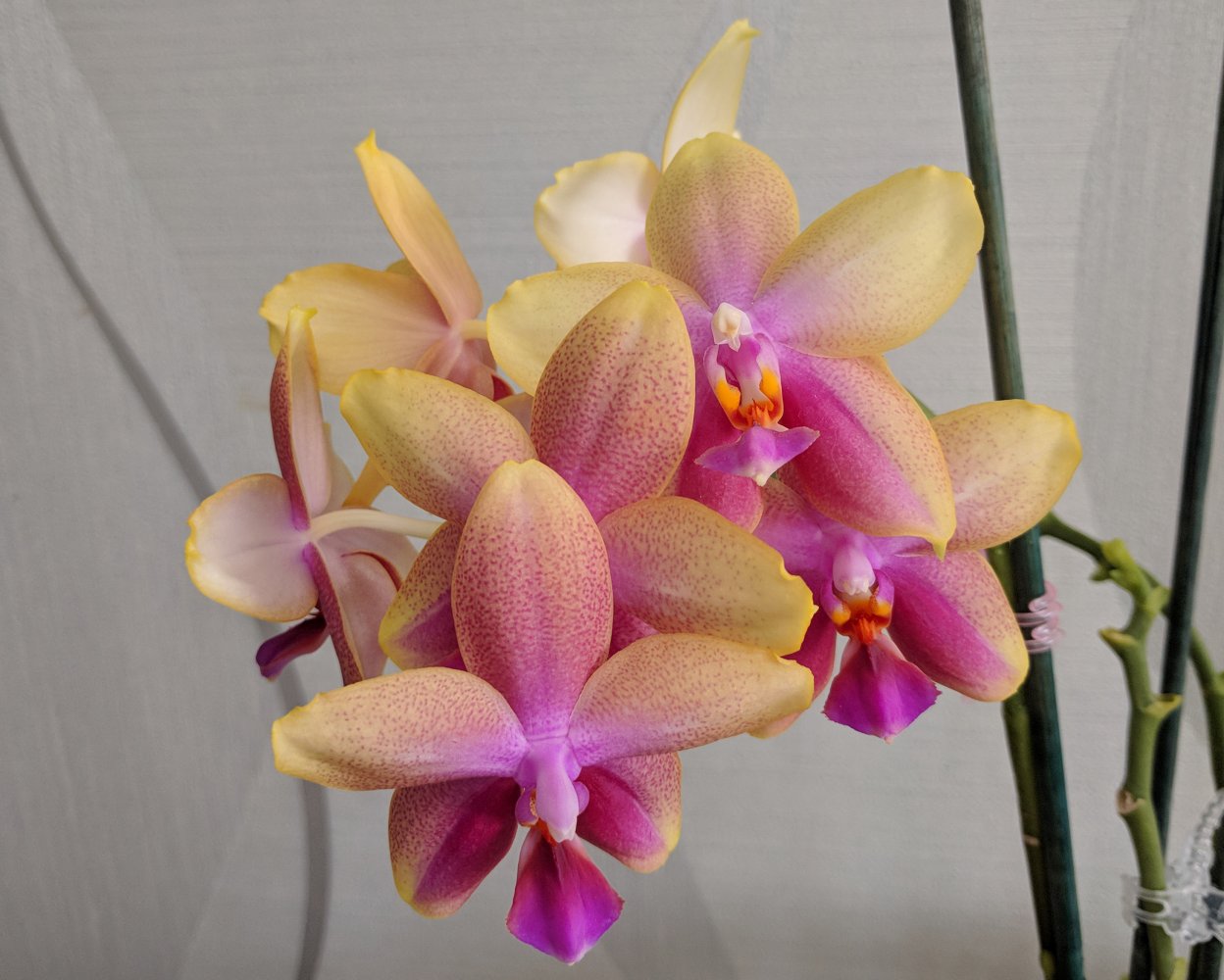 Ого, прямо радуга!Очень интересный кросс получился, у меня цвёл, я выкладывала фотографию в теме цветения. Расцветает нежно розовым, больше на шиллериану похож, а потом набирает цвет, получаются очень нежные переходы от розового к жёлтому. Губа потрясающая, как у Филадельфии старого образца.Посмотреть вложение 242074