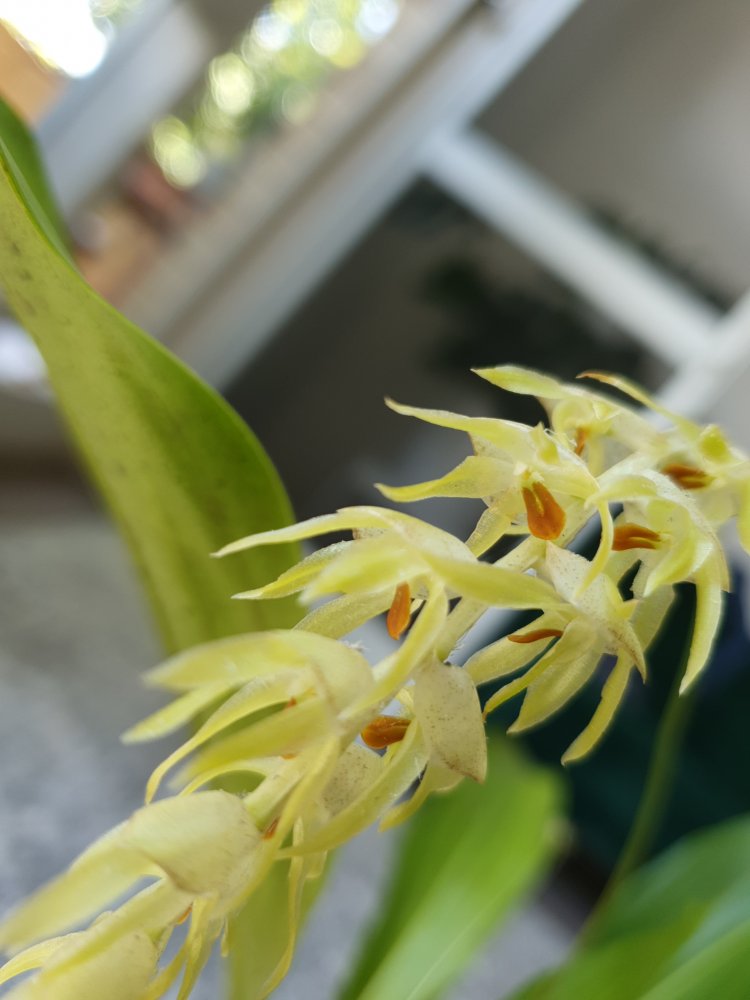 Dendrochilum sp. Неопознанный вид, покупался как Dendrochilum cobbianum, но цветение показало что это однозначно не он. Если кто поможет опознать, буду очень признателен. Я подозреваю что это возможно latifolium, но не уверен. Растение очень крупное, листья до полуметра, цветоносы по 75 см.