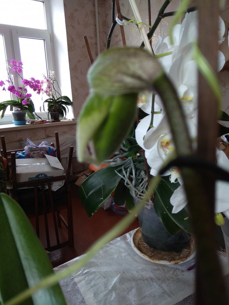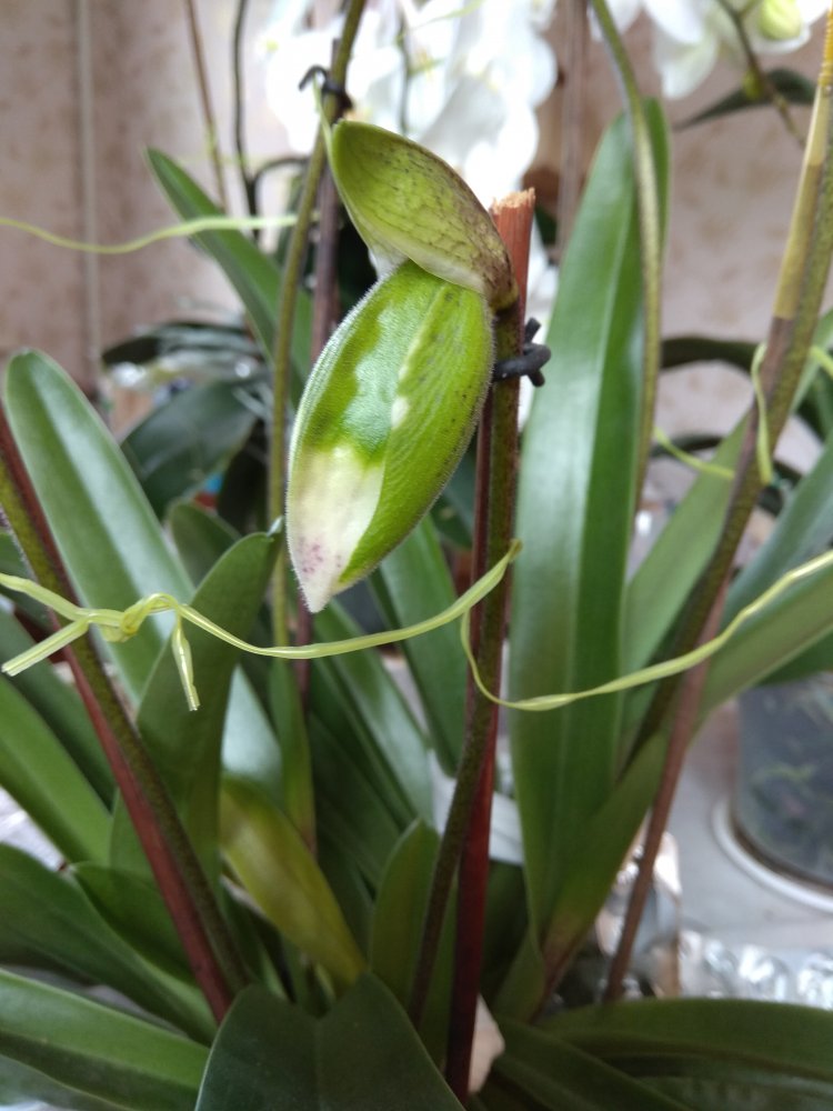 Ну ОЧЕНЬ медленно распускаются 5 бутонов Paph. Rosy Dawn Hibrige от Карге. Только у одного цветка (последнее фото) показалось "личико". Цветоносы 26-40см,- выше, чем у тех, что продают по группам. Как раз у цветка на самом длинном цветоносе приоткрылся бутон. Когда же я увижу цветок? Покупала в 2018 году