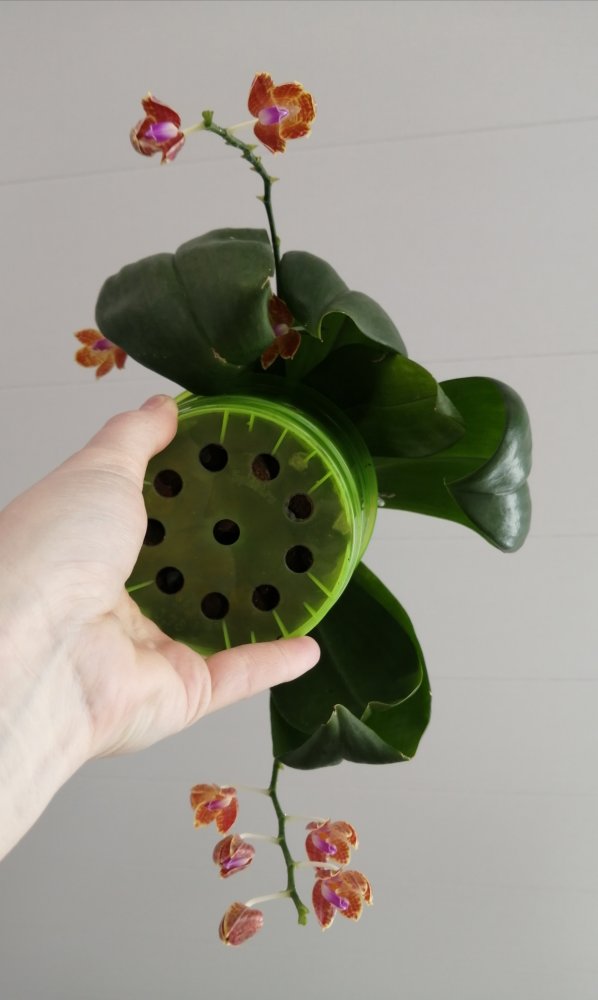 Покупалась когда-то давно как Tolumnia Jairak Firm 'Chocolate Drop', не помню то ли у Pachara, то ли у Kultana. Уже и делилась пару раз. Интересно, что было цветение и коричневыми цветочками и фиолетовыми, как сейчас.