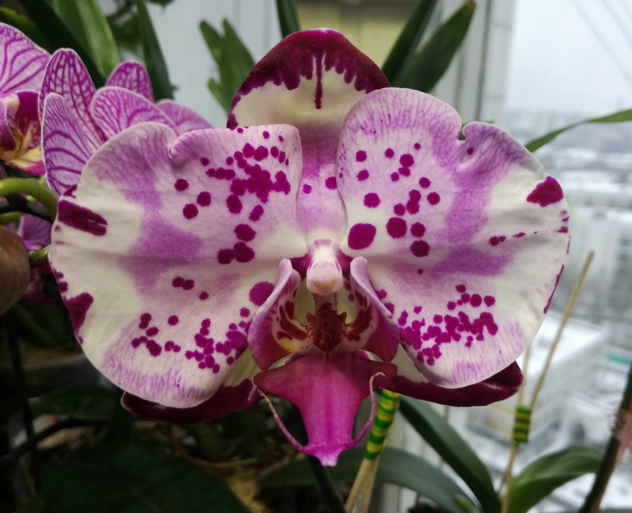 Вчера расцвел фаленопсис (фото 1): цветок- бархатный, размером около 10см, расцветает не каждыйгод- за 6 лет 3-е домашнее цветение, новые листья тоже почти не растут. Также порадовал P. WHITE SWAN (фото 2)- крупный белый цветок, 2 прикорневые детки уже тоже дали несколько цветоносов. Жаль, что погода несолнечная...