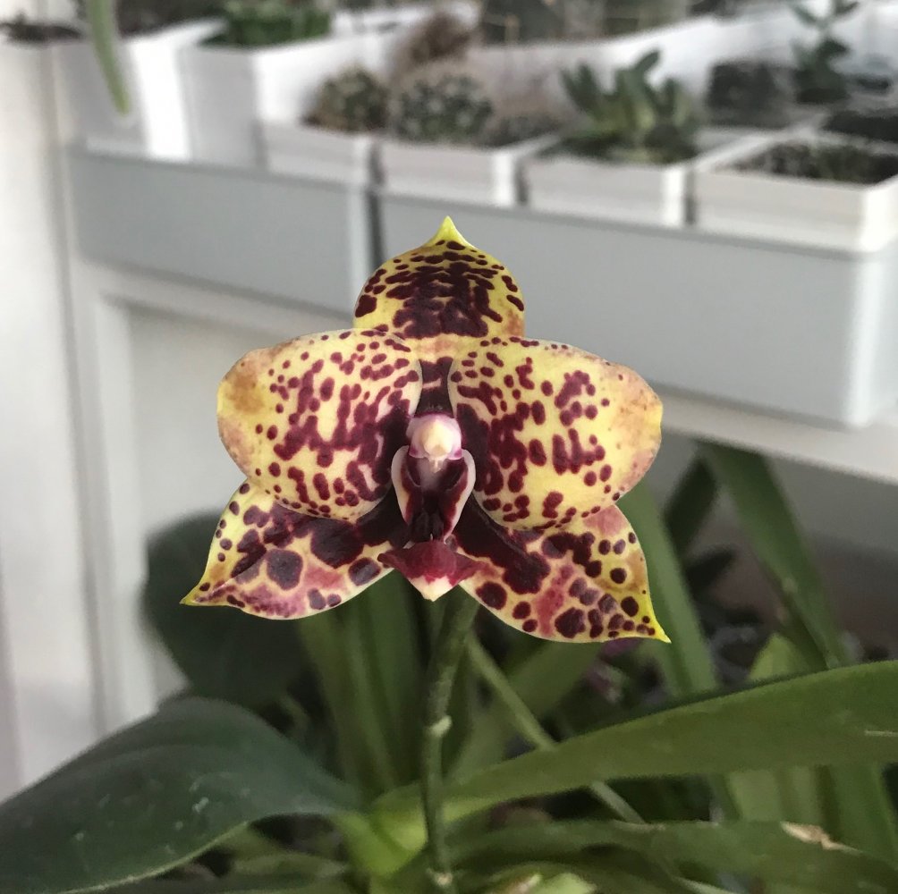 Всех с Новым годом и Рождеством поздравляю и желаю здоровья и счастья в Новом году!Поделитесь пожалуйста цветением у кого процвел Ever-spring King x (Potzu Beauty x Doritaenopsis King Shiang's Beauty) 'Black Ox из спецпредложения 29443 Вызов принят:) Растение найдено! У меня вот такое цветение,но это же не оно,так обидно!