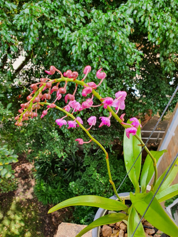 Содержится у меня в подвесной корзине с камнями, яркое солнечное освещение, это прямые солнечные лучи с лёгким затенением ветками дерева. Поливаю каждое утро опусканием в ведро с водой, но только в сухую погоду, когда идёт дождь то сам поливается, т.к на самом краю балкона расположен. Удобряется самостоятельно птичьим полётом 😁 ну и плюс корзиночка со slow release удобрением в капсулах.
