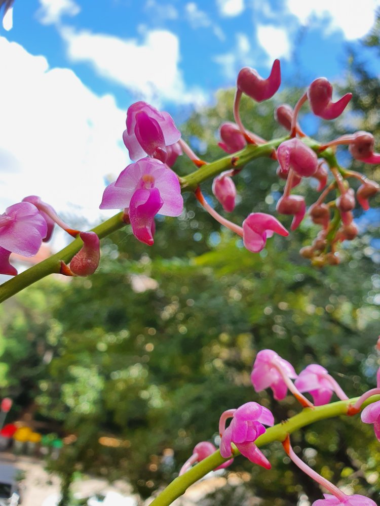 Второй день цветения, ещё не полностью распустился, но уже очень красивый, цвет как у разбавленного красного вина. Запаха увы нет (может потом появится, не знаю), цветоносы длиной примерно 30-40 см, на каждом более 30 бутонов и продолжает наращивать, размер цветка 2 см