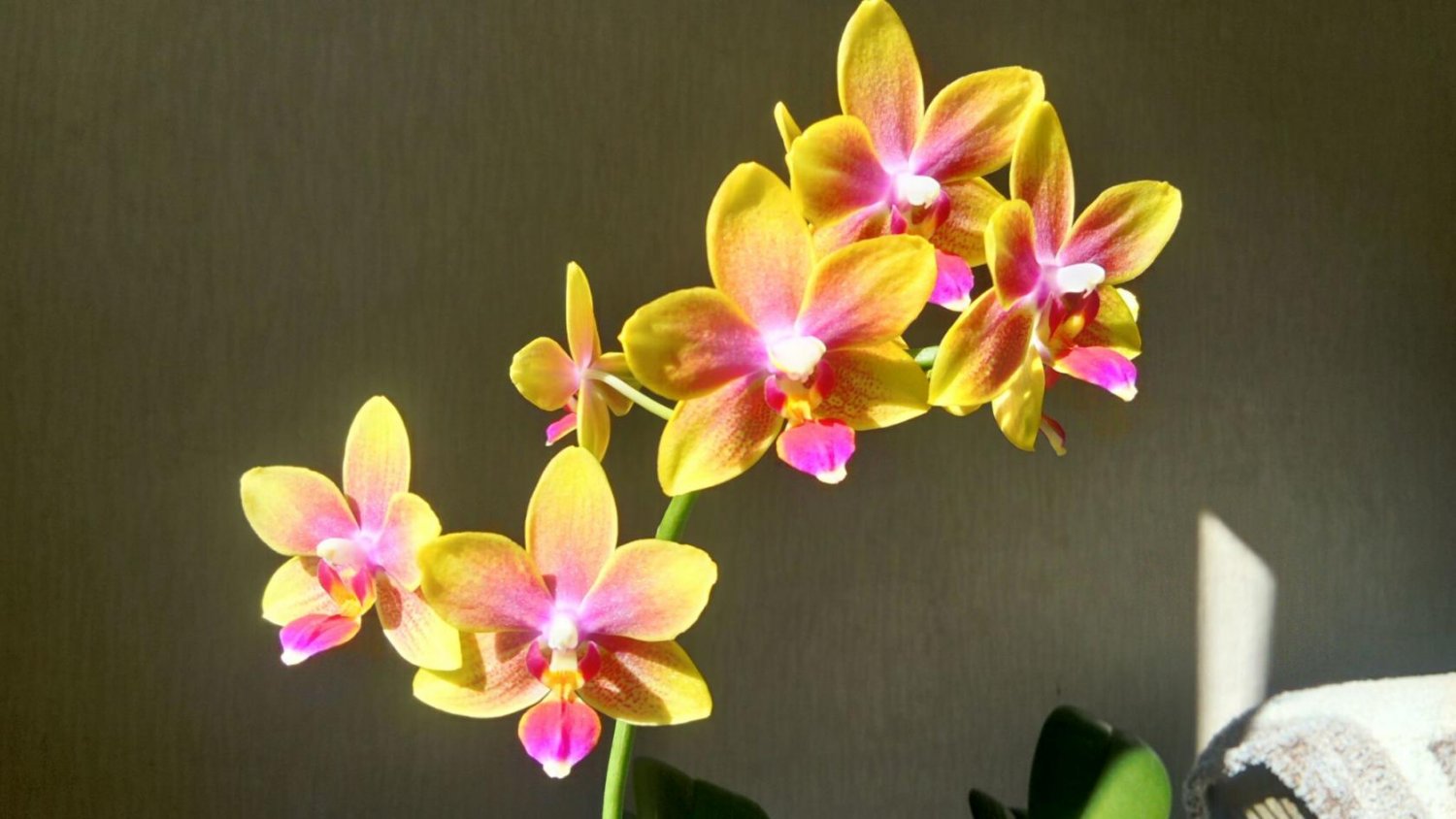 Цветонос достаточно длинный, склонный к ветвлению. В итоге получается шикарный букет. Плюс на лепестках присутствует искристость...
